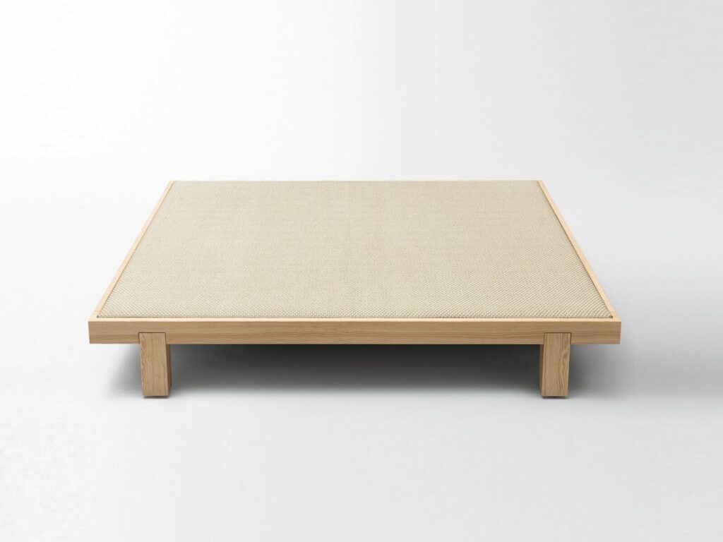Toku is a low square garden table with a fabric top.