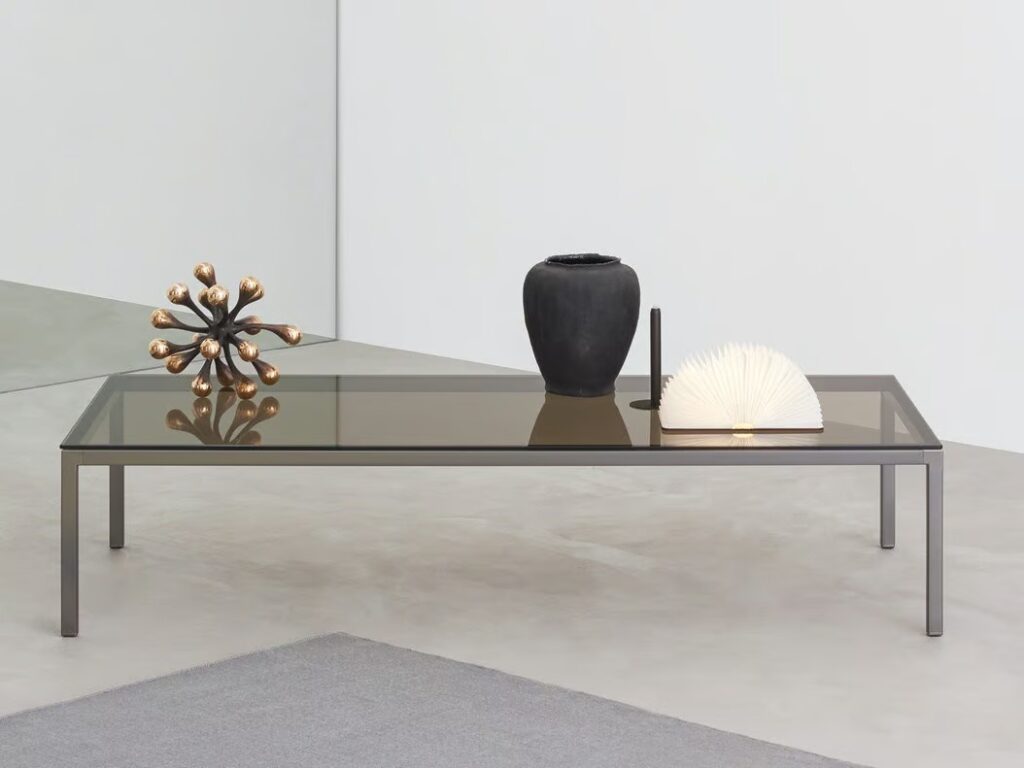 Niedriger rechteckiger Couchtisch aus Stahl und Kristal