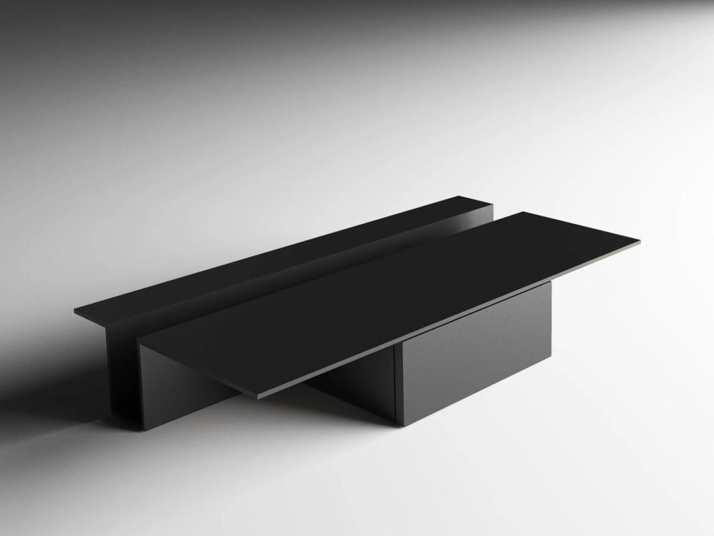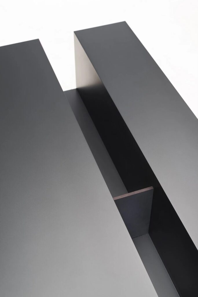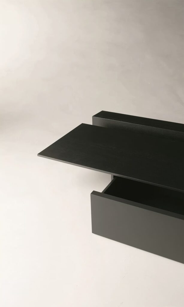 GREK ist ein Tisch, der furniert oder lackiert erhältlich ist und aus einem 12 mm dicken Tragrahmen besteht, der in einem "Sandwich" aus gepresstem und verleimtem MDF und Aluminiumblech gefaltet wird. Gehäusestruktur aus 14 mm dickem MDF, Frontplatte 30 mm dick, mit integrierter Schublade mit Push&Pull-Mechanismus auf BLUM®-Führungen.