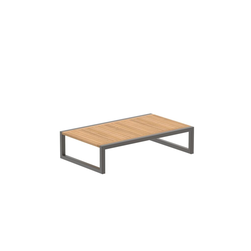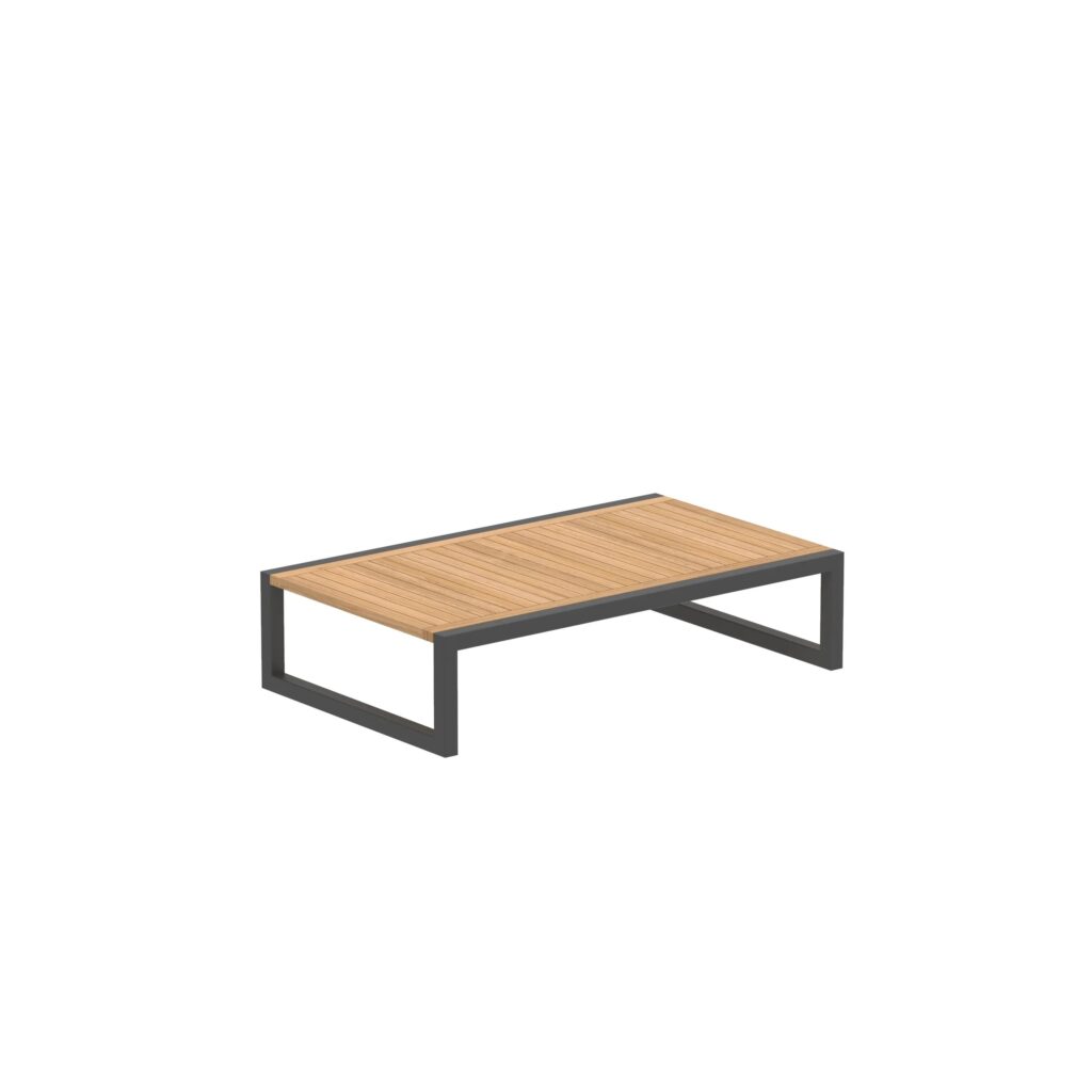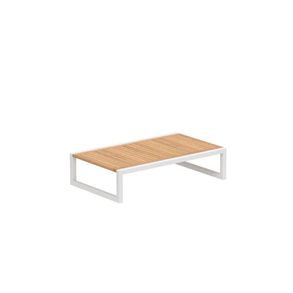 NINIX - Niedriger rechteckiger Beistelltisch aus Teakholz für den Garten.