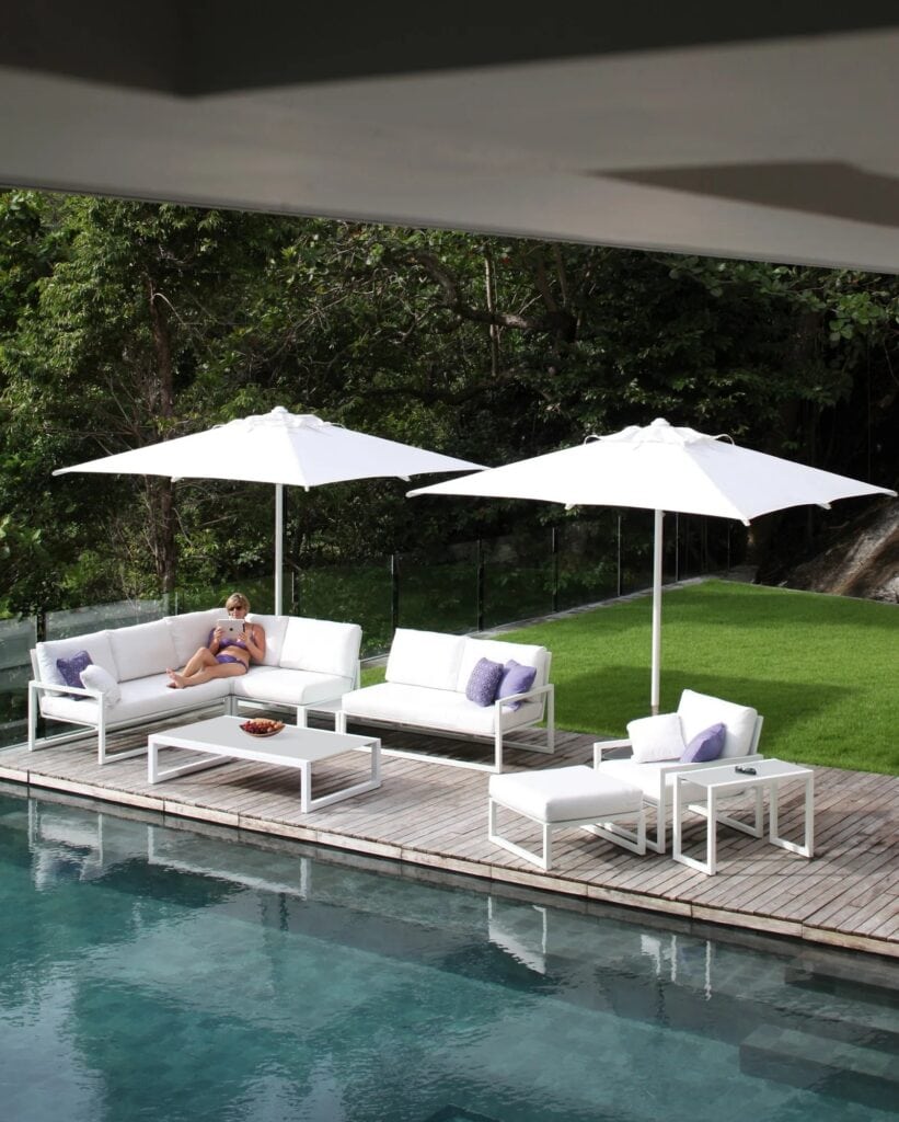 Das Maximum wird in Bezug auf Materialauswahl, optimierte Ergonomie und Verfeinerung in Qualität und Design geboten. Das Minimum bezieht sich auf die einfachen, schlanken Linien des Designs. Ninix ist höchstwahrscheinlich die kultverdächtigste Kollektion in Royal Botanias Sortiment. Die Kollektion ist im Laufe der Jahre gewachsen und ein wahres Statement für jede Terrasse. Auch aus technischer Sicht war die Ninix-Reihe ein wahrer Pionier. Die detaillierten Einlagen der Armlehnen, die Art und Weise, wie die Batyline-Schlinge mit dem Gestell verschraubt ist, die versteckten Rollen an allen Liegen, das clevere Prinzip der beiden ausziehbaren Ninix-Tische und nicht zuletzt der gefeierte Positionierungsmechanismus mit Gasfeder, der der Ninix 195 Liege ihre unvergleichliche Ergonomie verleiht. All diese Funktionen, die mittlerweile weit verbreitet sind, wurden erstmals in der Ninix-Kollektion eingesetzt. Dieses zeitlose Stück ist ein Beweis für verfeinertes Design.