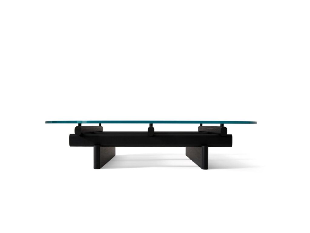 Dieser Designer-Beistelltisch von Patricia Urquiola inspiriert sich am Orient und ist ein häusliches Konstrukt, das die Schichtung der verschiedenen Materialien hervorhebt. Das Gestell aus Längs- und Querbalken mit ovalem Querschnitt, auf dem die Tischplatte aufliegt, macht dieses Designerstück ideal für das moderne Wohnzimmer und inspiriert sich am Brauch, japanische Schreine auf- und umzubauen. Das Ergebnis ist ein elegantes Möbelstück, das an ferne Länder denken lässt. Das Untergestell aus Massivholz stützt eine Tischplatte,rechteckig oder rund, die in der Ausführung aus extraweissem Glas oder Rauchglas oder aus Marmor erhältlich ist.