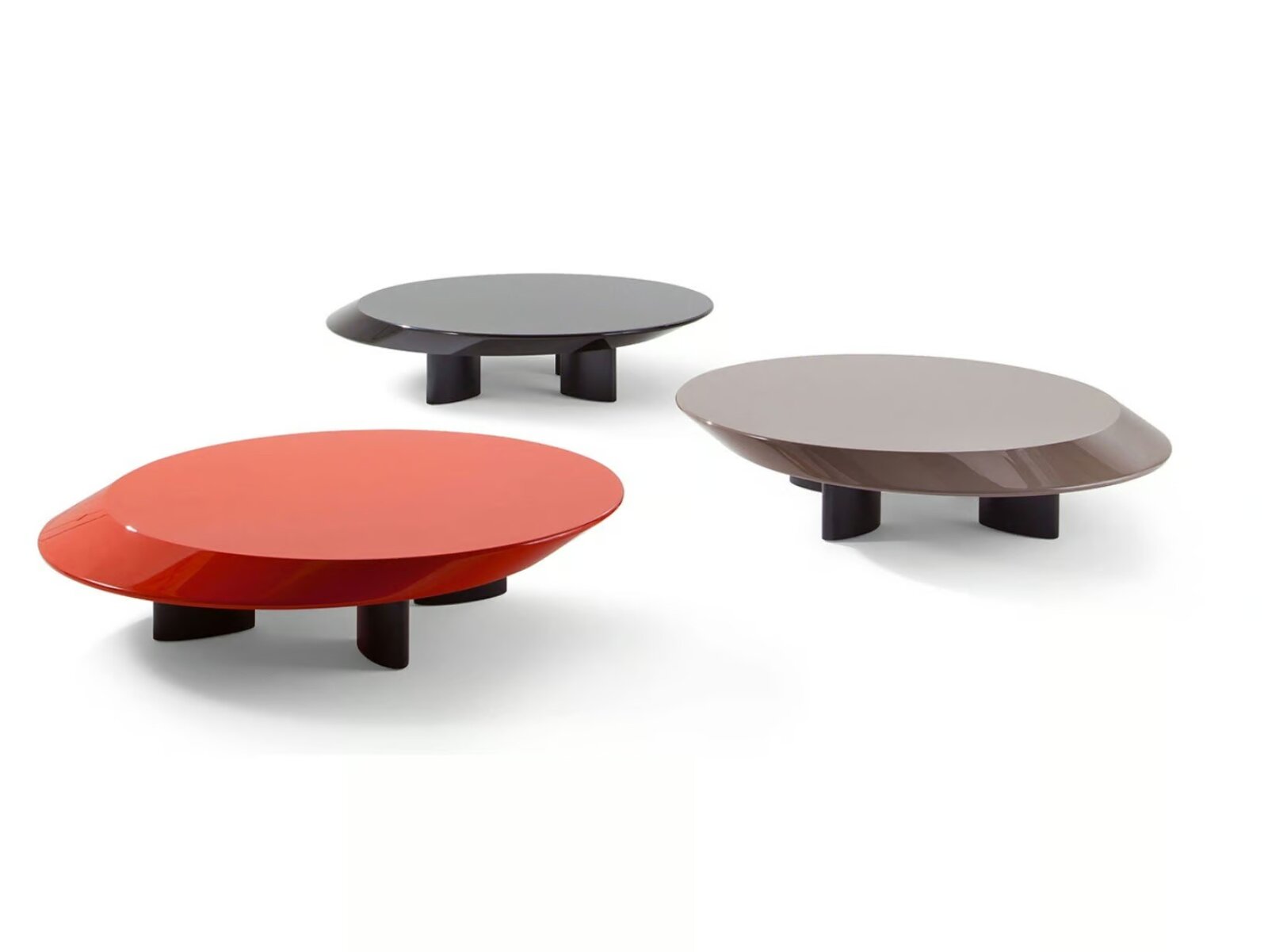 Accordo - Ein niedriger Tisch mit kühner, skulpturenhafter Form, den Charlotte Perriand anlässlich der ihr gewidmeten retrospektiven Ausstellung des Musée des Arts Décoratifs im Jahre 1985 entwarf. Der Tisch, der zu den letzten Werken der französischen Architektin und Designerin zählt, wurde als Unikat präsentiert. Das Original wurde anfänglich von Cassina neu aufgelegt, jedoch nur mit schwarz lackiertem Finish, zu dem sich heute neue, glänzende Farben wie China-Rot und Marron Glacé gesellen, als weitere Bestätigung für das stets aktuelle und zeitgemässe Wesen des Stücks. Die Kombination mehrerer Tischchen bietet die Gelegenheit, geometrische Systeme mit grosser Wirkung zu schaffen, die die Proportionen unterstreichen und ein völlig neues Gefühl der Schwerelosigkeit erzeugen. Die klaren, visuell dynamischen Formen, bieten sich für unterschiedliche Interpretationen mit extremer Nützlichkeit an und verwandeln das Objekt in einen primären Mittelpunkt für Zusammenkunft und Gastmahle.
