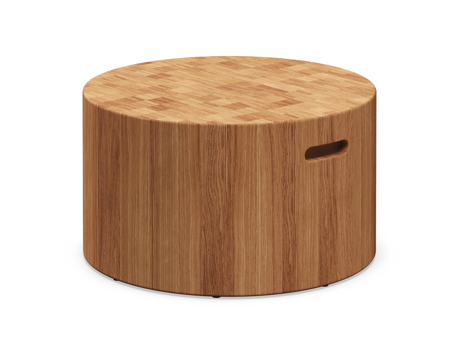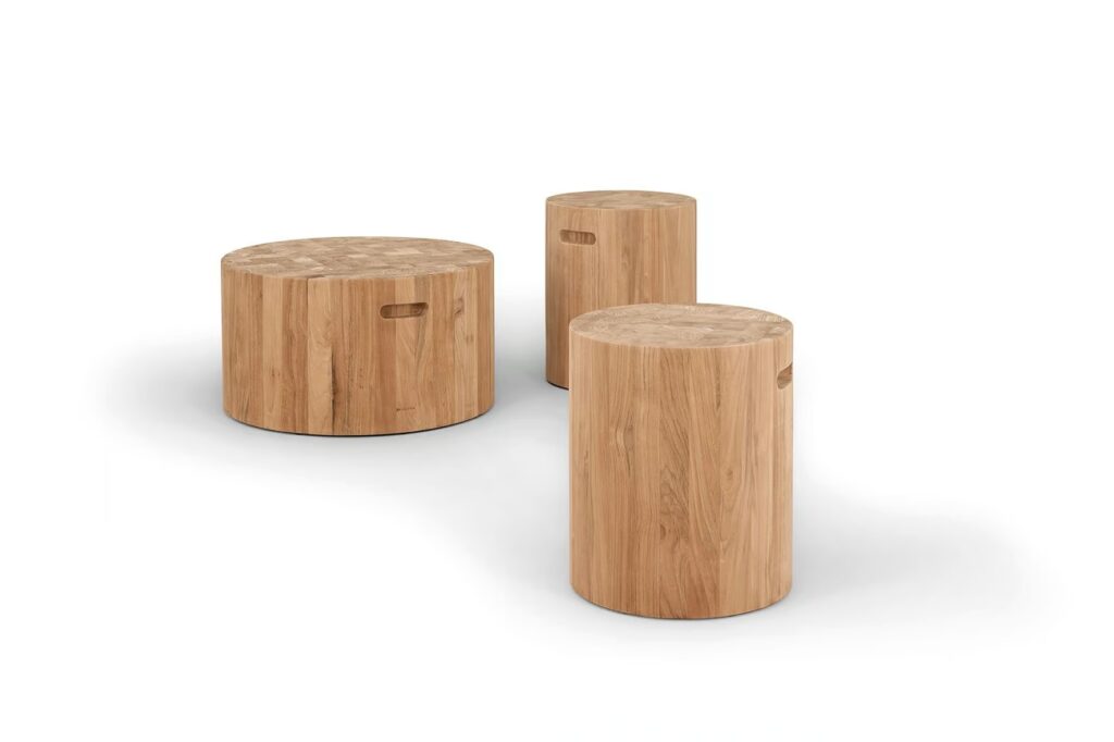 Block - Niedriger runder Teakholz-Gartenbeistelltisch.
