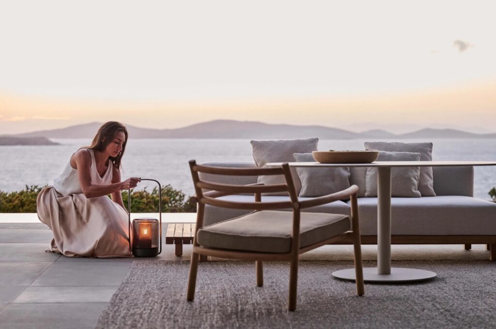 Der elegante T-Table mit seinen raffinierten Proportionen und eleganten Materialien entführt Sie in Träume eines glamourösen „Dolce-Vita“. Die Tischplatte aus glasiertem Lavastein, der vom Vesuv stammt, spiegelt den Himmel und erinnert an eine leicht gekräuselte Wasserfläche. Die farbige Glasur wird von Hand aufgetragen. Nach dem Brennen bei hoher Temperatur entsteht ein subtiler Craquelé-Effekt, der jedem Tisch ein einzigartiges Aussehen verleiht. Die Glasur macht die Tischplatte wasser-, hitze-, frost-, UV- und fleckenfest und sorgt außerdem für eine einfache Pflege. Dieser minimalistische und zeitlose Tisch ist auch als „niedriger Esstisch“ mit einer Höhe von 67 cm erhältlich. Das macht das Essen im Freien noch entspannender.