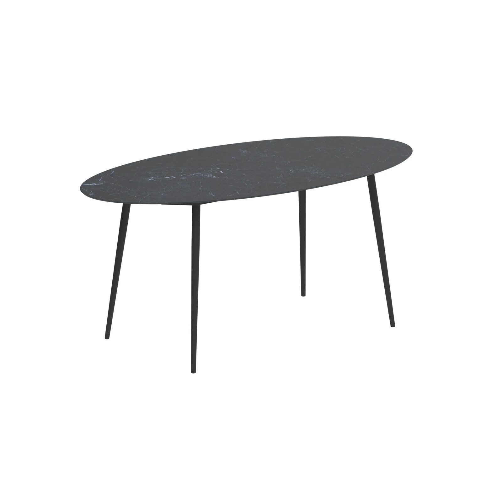 Styletto ist ein Gartentisch mit einer Platte, die in runder, ovaler und rechteckiger Form erhältlich ist. Es ist möglich, ihn in verschiedenen Grössen, Höhen und Materialkombinationen zu haben.