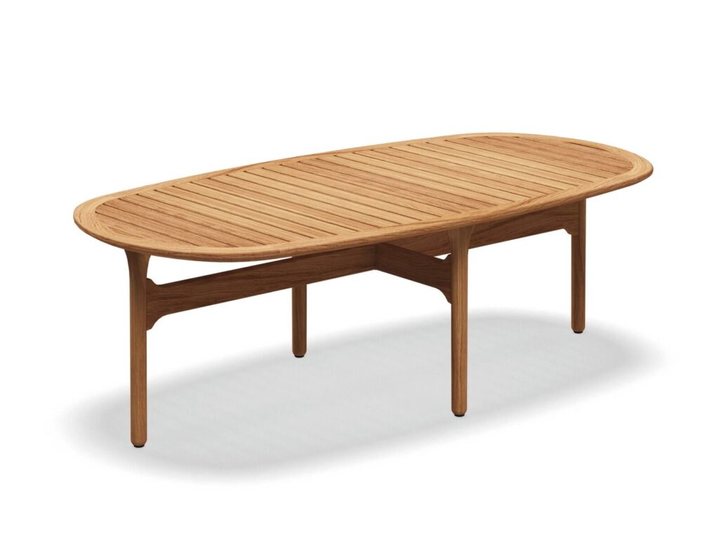 Ovaler niedriger Garten-Beistelltisch aus Teakholz
