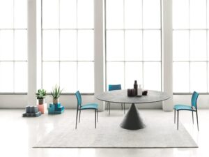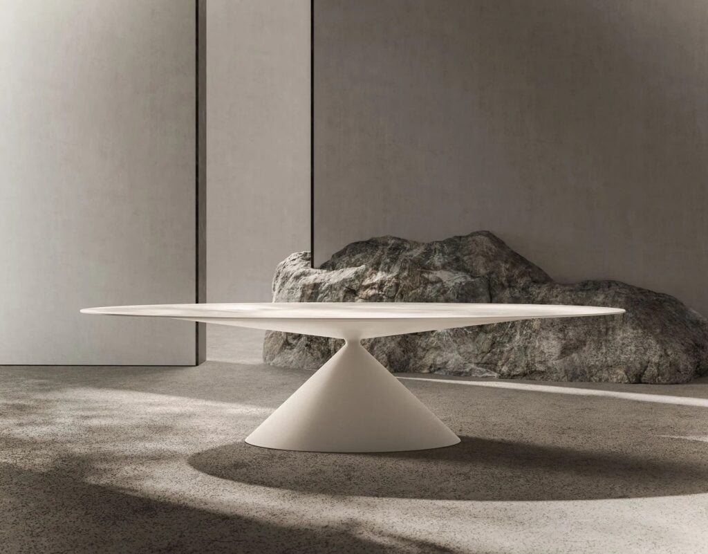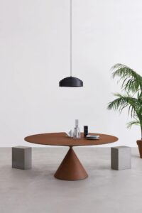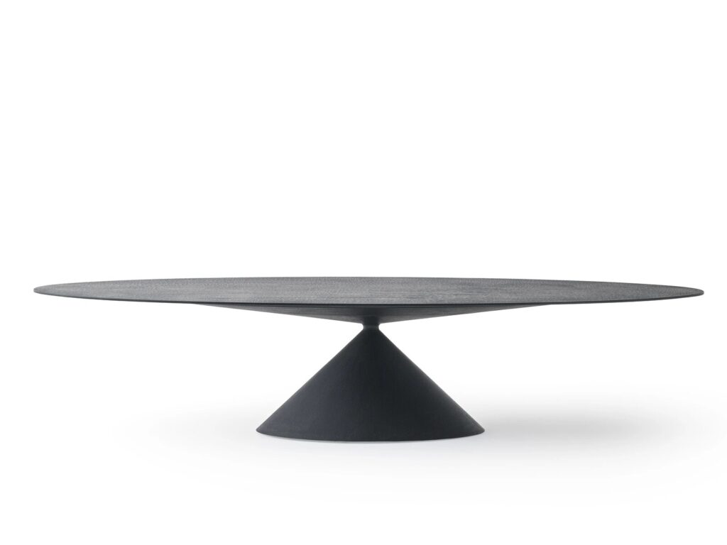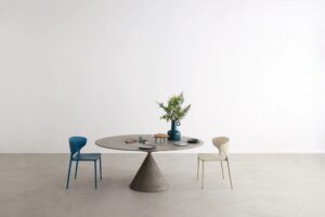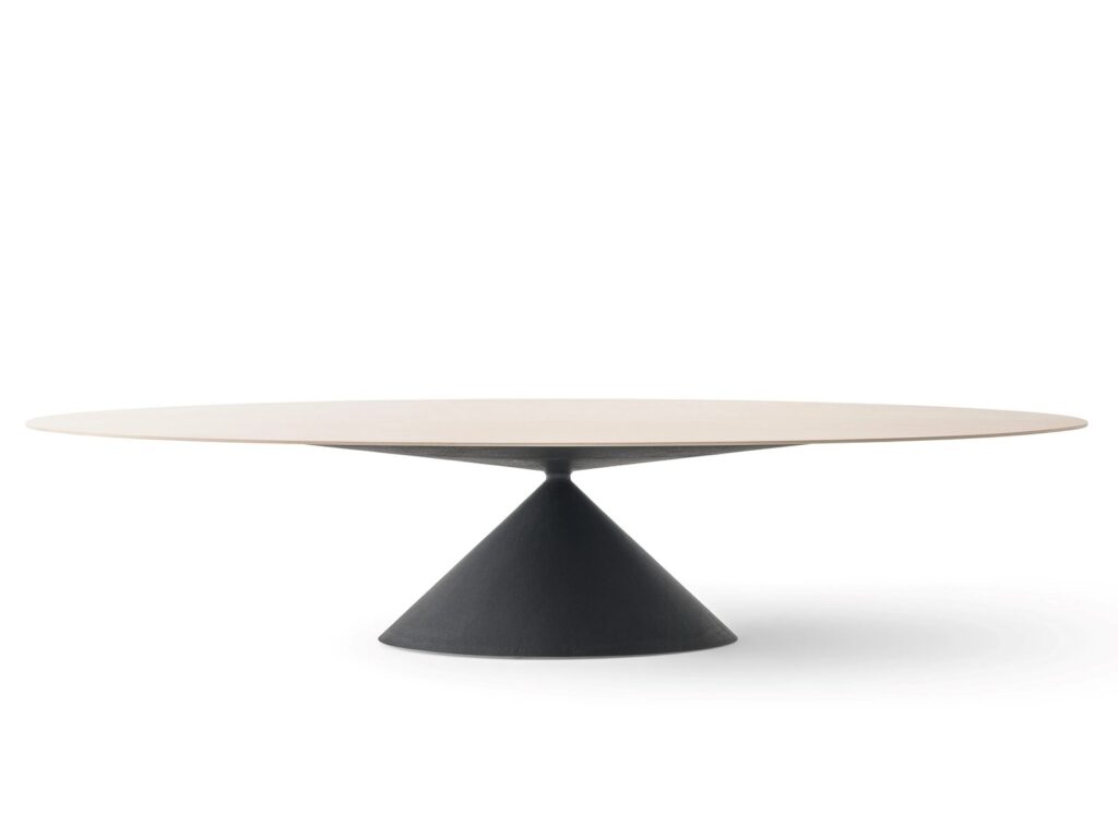 Der ikonische Tisch Clay erreicht nie dagewesene und grosszügige Dimensionen, bis er MAXI wird. Eine überraschende ovale Platte von 3,5 Metern Länge bietet neue Perspektiven und erweitert die Möglichkeiten für häusliche und andere Umgebungen, mit einem präzisen und klaren grafischen Zeichen in einer perfekten Verbindung zwischen Harmonie der Formen und Solidität des Materials.