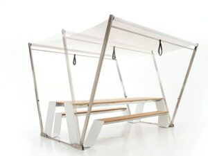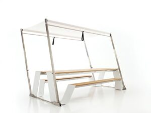 Diese multifunktionale Bank hat verschiedene Anwendungsmöglichkeiten. Schlüpfen Sie an den befestigten Beinen vorbei und nutzen Sie die glatte Oberfläche als Tischplatte oder drehen Sie sich um und nutzen Sie die Tischplatte als Rückenlehne, ganz wie Sie wollen! Dieses vielseitige Design ist in mehreren natürlichen Farben erhältlich und sorgt auf Dachterrassen, in Gärten, auf dem Balkon oder am Strassenrand für Komfort.