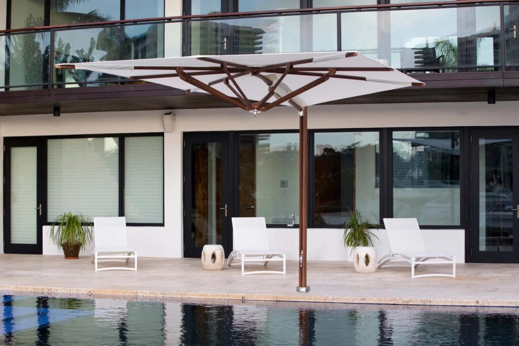 Quadratischer Ampel Sonnenschirm aus Aluminium