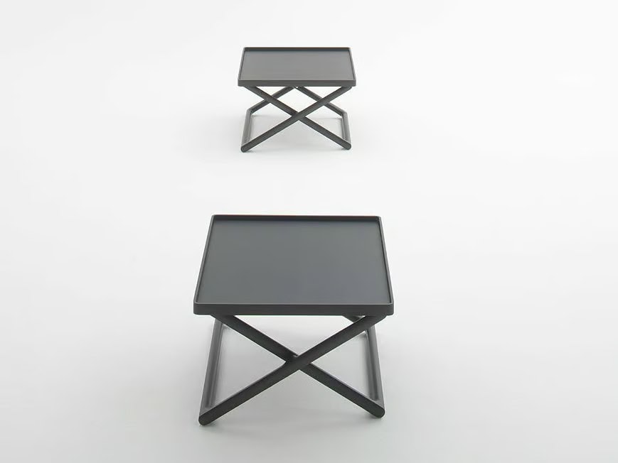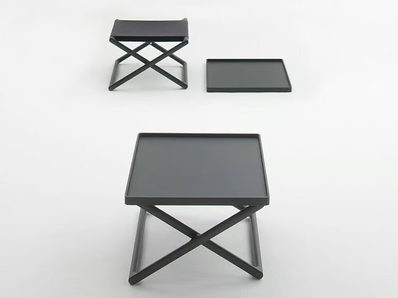Dieses Tablett kann auf die Struktur des Hockers Portofino gestellt werden, um den Hocker in einen Beistelltisch zu verwandeln.