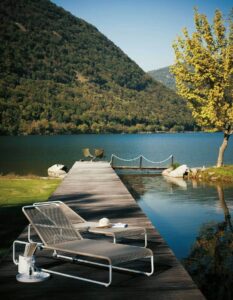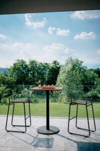 Harp consists of chairs, armchairs, bar stools, and a sun lounger: the elegance of the silhouette makes each piece unique and easily recognizable, even when paired with other designer furniture.
