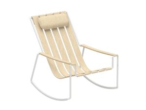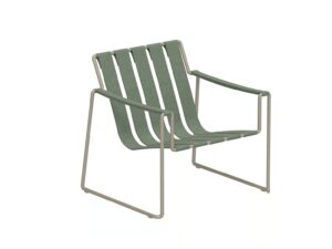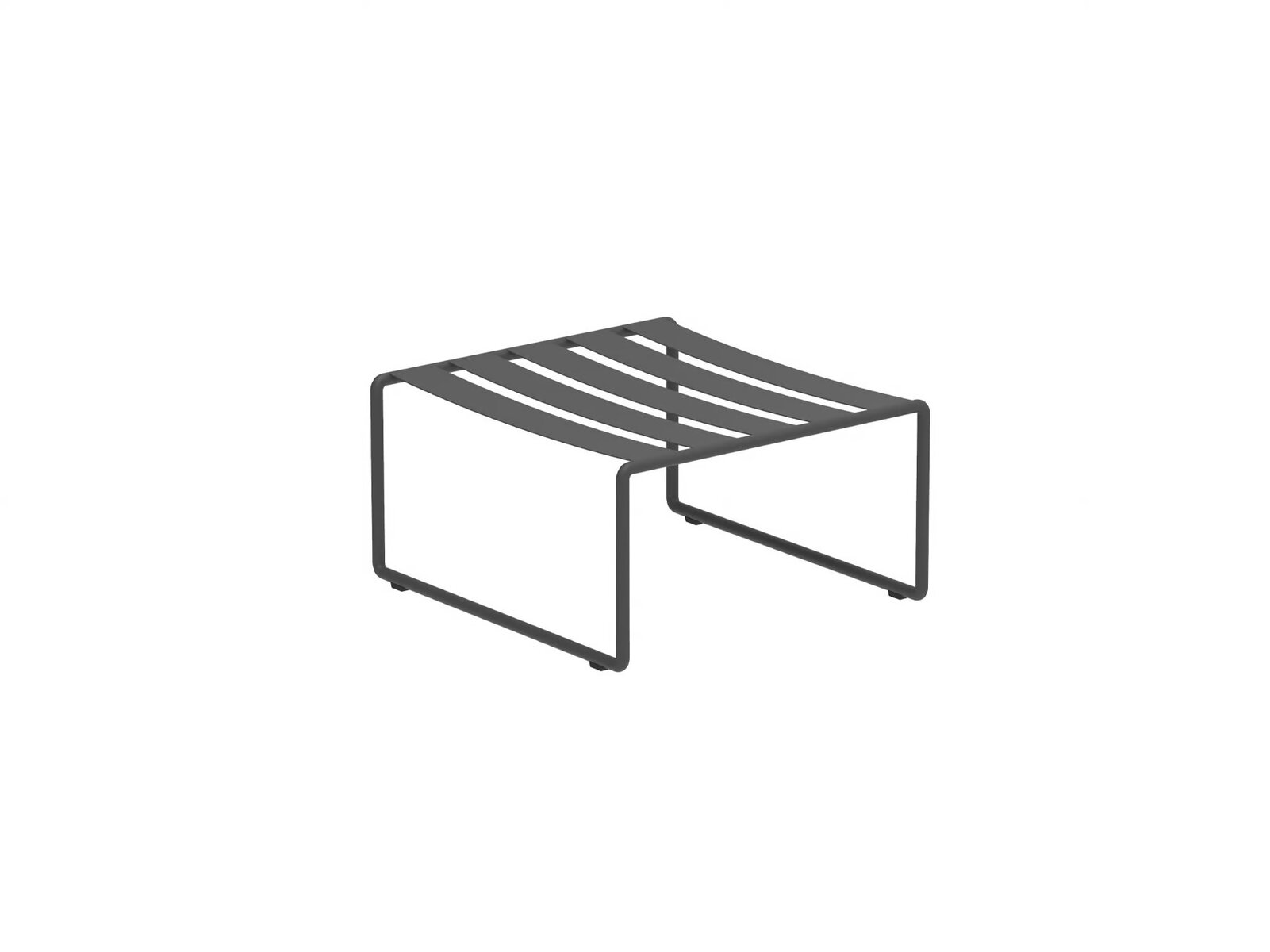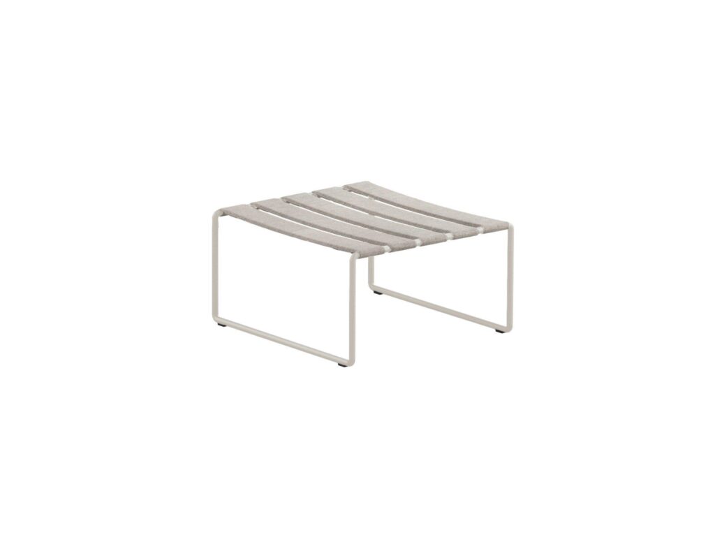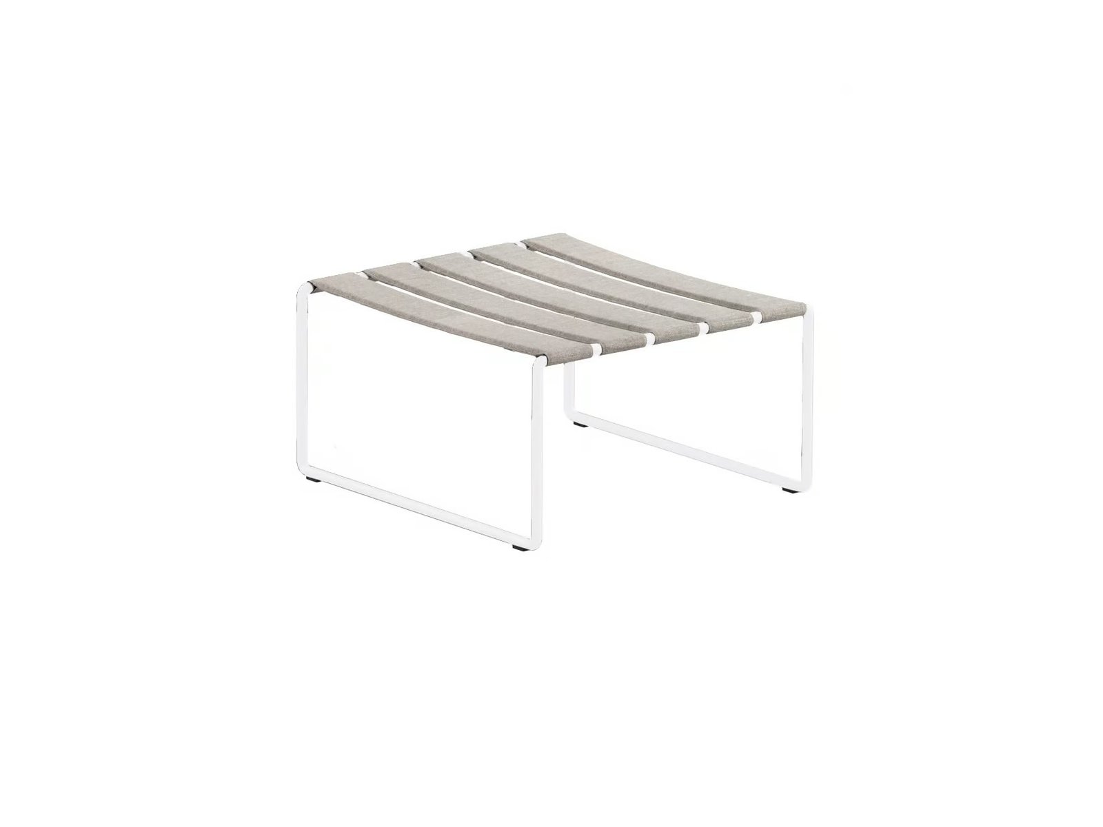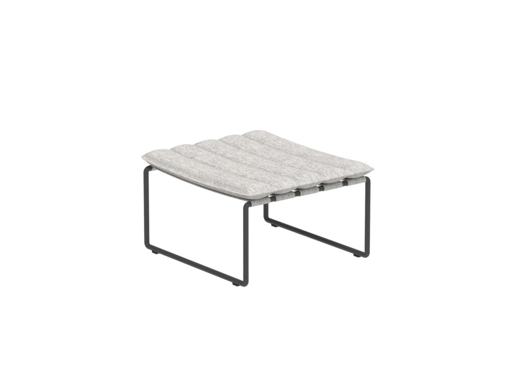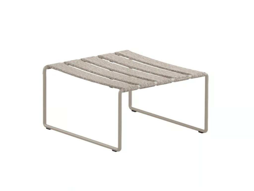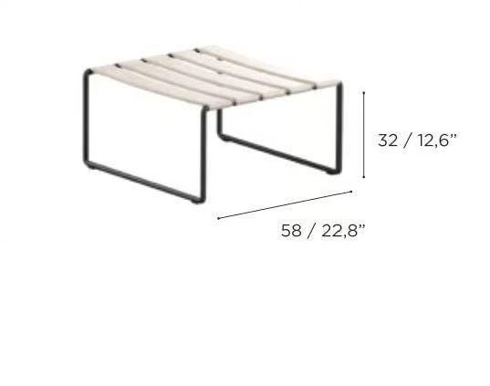 Strappy ist ein Gartenhocker mit einem Kufengestell. Das Polstermaterial kann aus Stoff oder Leder hergestellt werden.