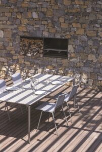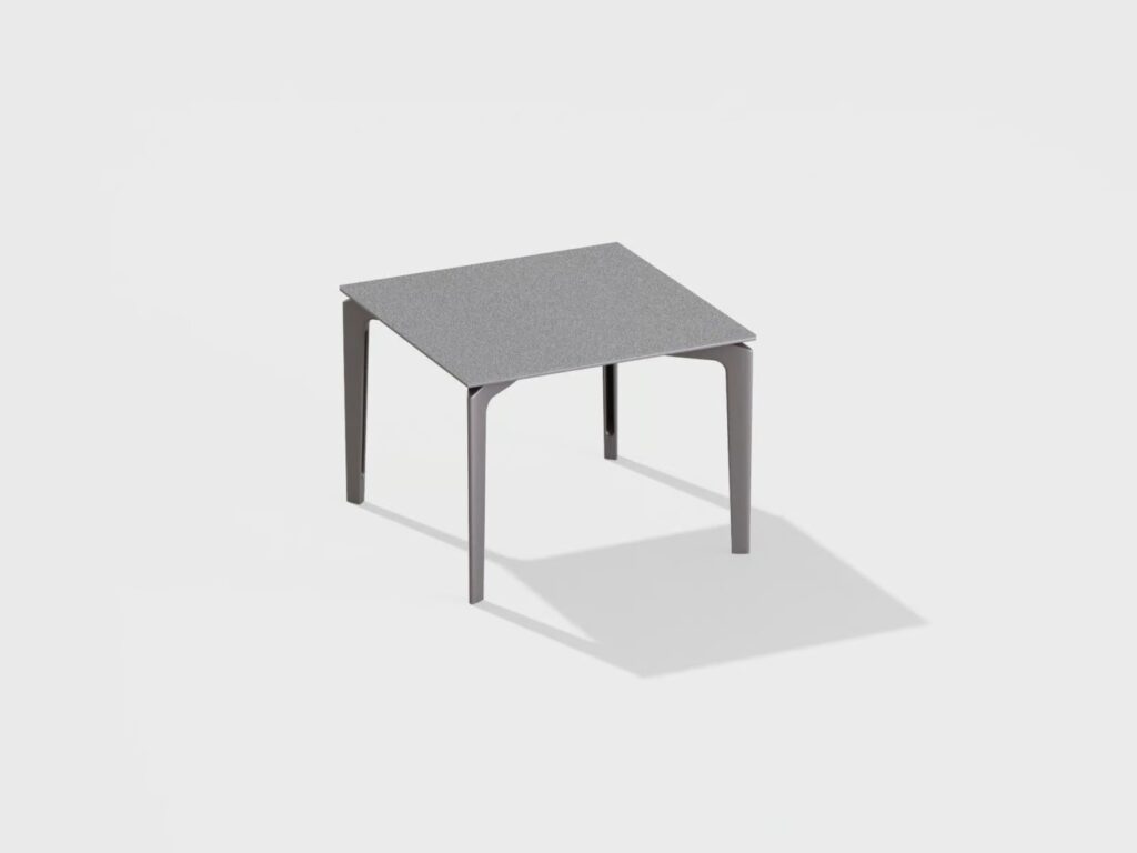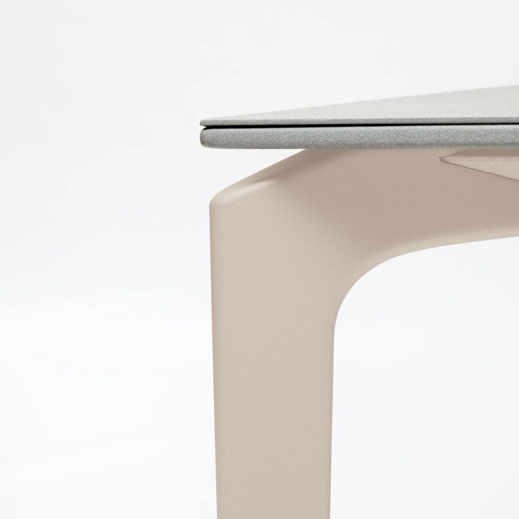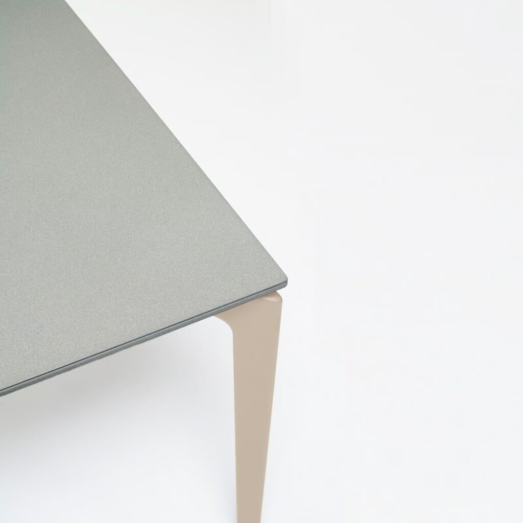 Eine Kollektion von Tischen, die sich durch Individualität auszeichnet. Die gesamte AllSize-Kollektion kann sowohl in der Höhe als auch in der Grösse der Tischplatte individuell gestaltet werden. Der geometrische und strenge Stil von AllSize wird durch die Tischplatten aus Feinsteinzeug oder mit Steineffekt hervorgehoben, die auf einem Gestell aus lackiertem Aluminium ruhen und einen interessanten Materialkontrast bilden. Die Beine, der Rahmen und die Stützen sind aus stranggepresstem Aluminium gefertigt. Es ist auch eine Standardversion mit einer Platte aus lackiertem Aluminium erhältlich.