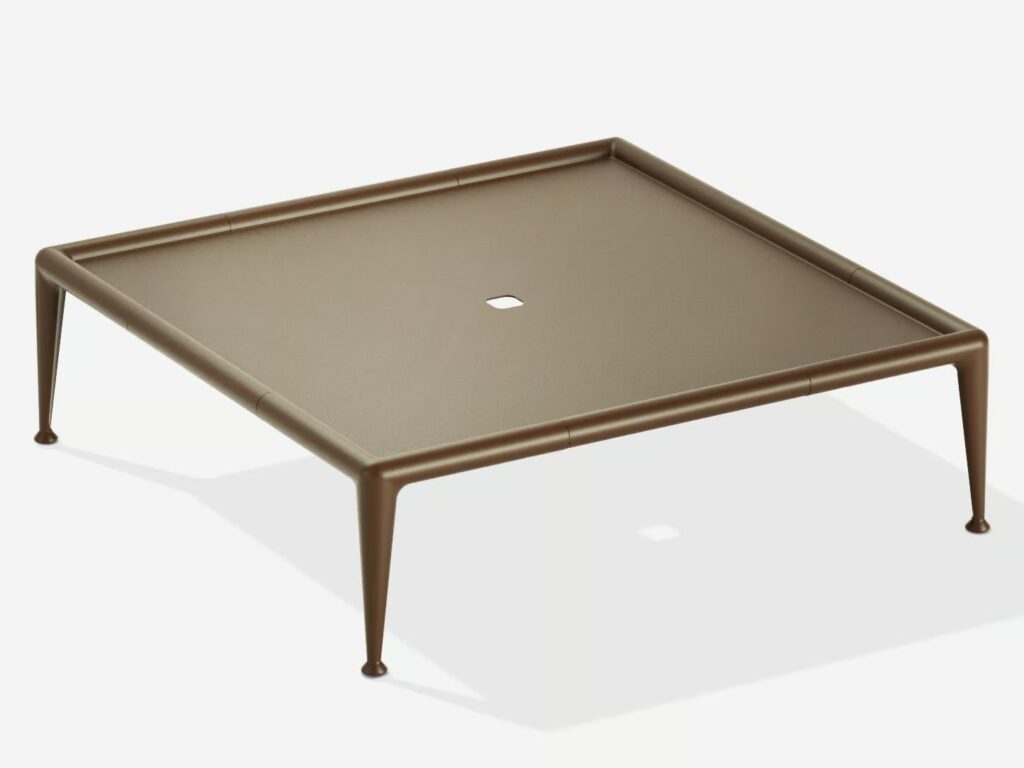 Niedriger Gartentisch aus Aluminium. Auch mit Platte aus Feinsteinzeug erhältlich.