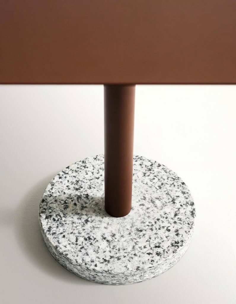Die Wirkung der Materialien, die für dieses Design der quadratischen oder runden Platte mit einem Sockel aus weißem Simplon-Stein verwendet werden, lassen Bernardo in jedem Raum innerhalb und außerhalb des Hauses seinen Platz finden.