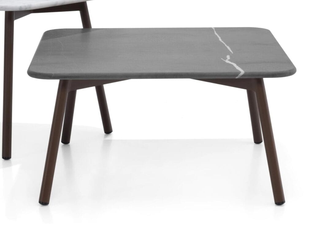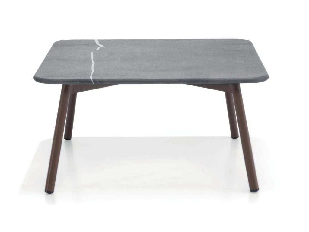 Die Piper Kollektion rundet sich mit niedrigen Tischen ab, die sich perfekt mit jeden Raum und Notwendigkeit eignen. Der PIPER 011 Couchtisch besitzt eine vierbeinige Basis, auf der die quadratische Tischplatte aufliegt, die in zahlreichen Varianten erhältlich ist: Teak, Stein, HPL
