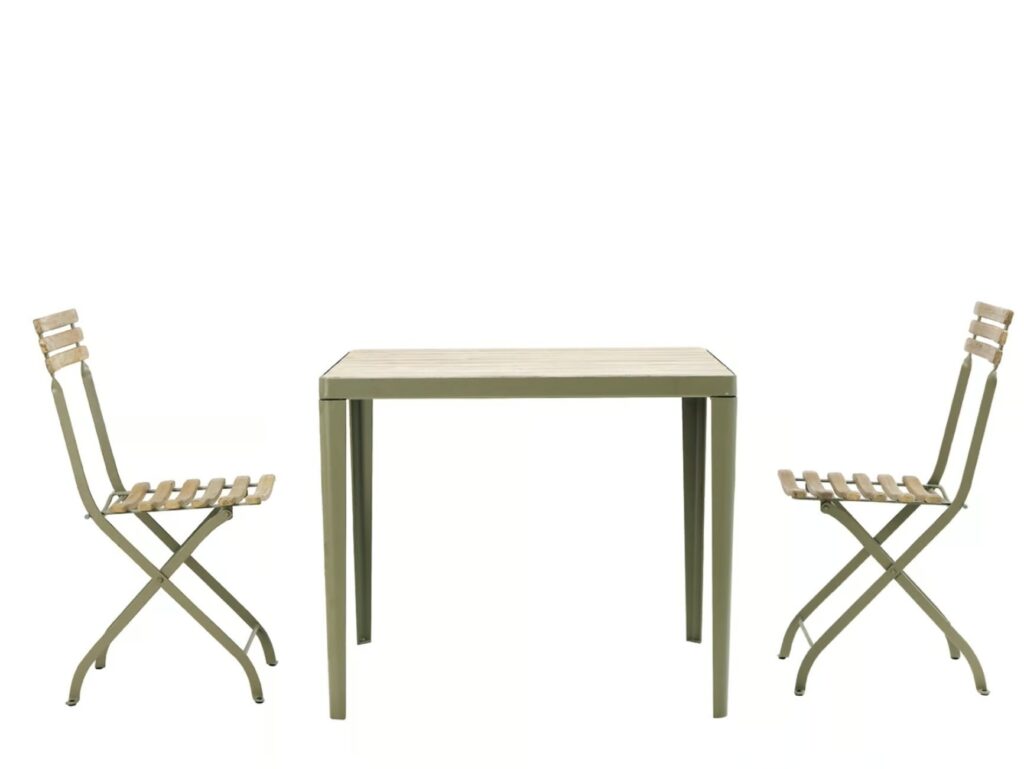 Grosse Kollektion aus Metallund Teakholz, bestehend aus Tischen und Sitzflächen für den privaten oder gewerblichen Gebrauch.