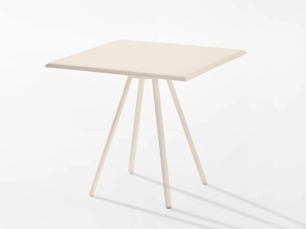 Tisch mit quadratischer Tischplatte, in lackiertem Aluminium mit 4 Beinen.