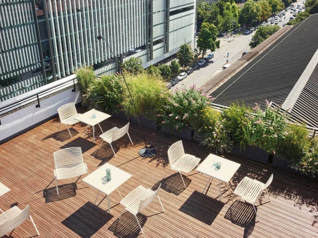 Die Kollektion eignet sich sowohl für den privaten als auch gewerblichen Bereich und ist aus widerstandsfähigem Spritzgussaluminium gefertigt. Zebra vereint Stabilität und leichtgewichtige Eleganz in einer perfekten Synthese natürlicher Elemente: die markante Musterung der Rückenlehne erinnert an die bezaubernd unregelmässige Maserung von Holz oder Gesteinsschichten.