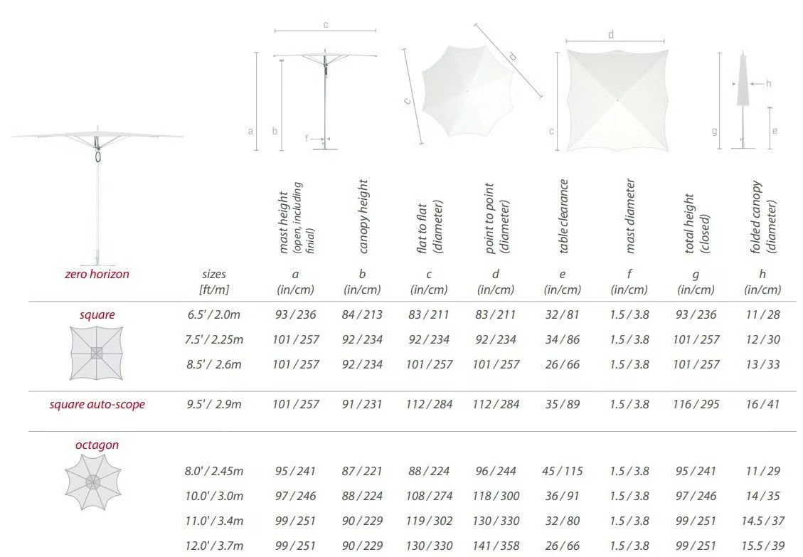 Der Zero Horizon ist ein minimalistischer Ansatz für das Design von Beschattungsanlagen. Er maximiert den Nutzen von Sonnenschirmen mit einem vertikalen "Null"-Profil und bietet eine minimale Wirkung in jeder Enklave von natürlicher Schönheit.