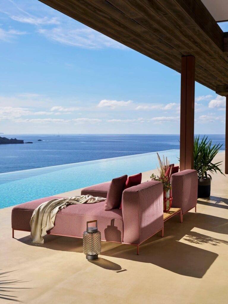 Die grosszügigen Formen und wesentlichen Linien von Mex-Hi, dem von Piero Lissoni entworfenen modularen Sofasystem, verschmelzen mit neuen Materialien und Oberflächen in einer neuen Kollektion, die speziell für den Aussenbereich entwickelt wurde. Dank der drei unterschiedlich grossen Sockel, die sich zu vielseitigen und dynamischen Kompositionen kombinieren lassen. Das System wird durch ein grösseres Dreisitzer-Sofa bereichert, das als eigenständiges Element verwendet werden kann, sowie durch eine gemütliche Liege zum Faulenzen und Sonnenbaden am Pool. Eine Platte aus massivem Iroko-Holz kann auf den Sockel des Gestells aufgesetzt werden, um einen funktionalen integrierten Couchtisch zu bilden, der ein harmonisches Zusammenspiel von Texturen schafft. Dieses Holz verleiht dem System sofort eine wärmere Ausstrahlung und sorgt für ein einladendes und entspannendes Ambiente. Um das System Mex-Hi Outdoor zu vervollständigen, sind drei freistehende Beistelltische mit demselben Metallgestell auch mit einer Platte aus massivem Iroko-Holz oder aus elfenbeinfarben glasiertem Feinsteinzeug erhältlich. Auf jeden Tisch kann auch eine Matratze gelegt werden, um ihn in eine bequeme Sitzgelegenheit zu verwandeln, was seine Funktionalität noch unterstreicht. Die gemütlich gepolsterte Sitzfläche des Mex-Hi Outdoor aus recycelter PET-Faserwatte und Polyurethan mit einem Anteil an Polyolen aus biologischem Anbau wird von einem wasserabweisenden Segeltuch geschützt, damit kein Wasser ins Innere dringen kann. Die neuen, strukturierten Gewebe der Polsterung umschliessen die Formen des Systems, während eine Auswahl an stimmungsvollen Farben an mediterrane Landschaften erinnert. Die raffinierte Metallstruktur, die die weichen Polsterelemente hält, ist für den Aussenbereich geeignet und wird in vier neuen Farbtönen präsentiert: Taupe, Elfenbein, Grün und Terrakotta. Auch die Kissen wurden so entwickelt, dass sie zur Pflege oder zum Waschen leicht von der Struktur abgenommen werden können.