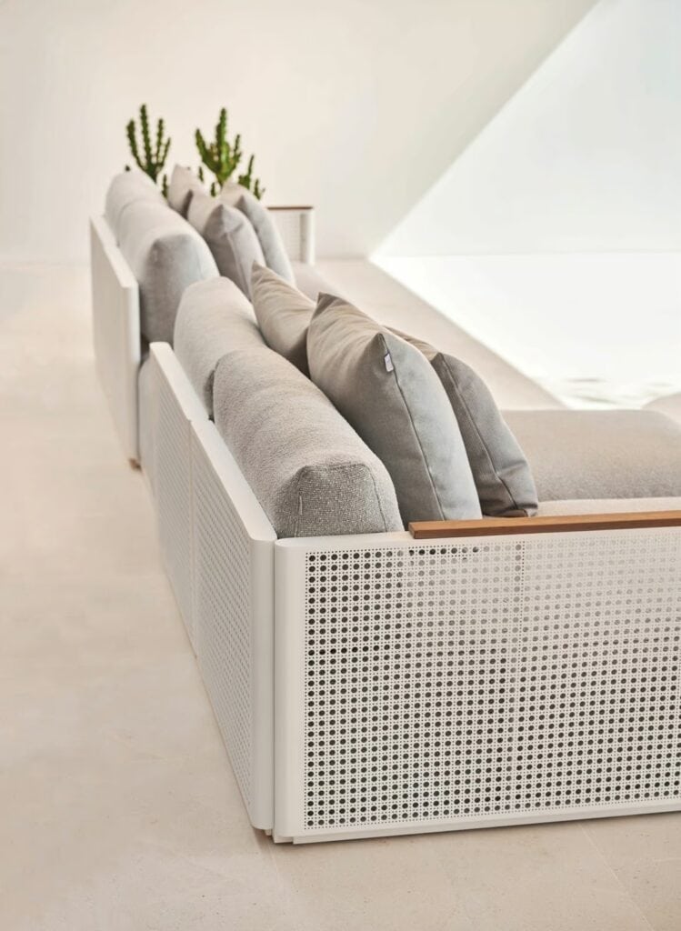 Bosc ist ein Ort auf Menorca, der die Essenz des Mittelmeers sehr gut zusammenfasst. Die traditionelle Komponente ist in unserer Vorstellungswelt immer präsent. Strukturelle Webtechniken unter Verwendung von Pflanzenfasern wie Weidengeflecht sind Teil unserer Kultur, und wir wollten sie durch eine zeitgenössische Abstraktion würdigen, die sie auf Aluminium überträgt und auf subtile, aber präsente Weise in dieses Produkt integriert."