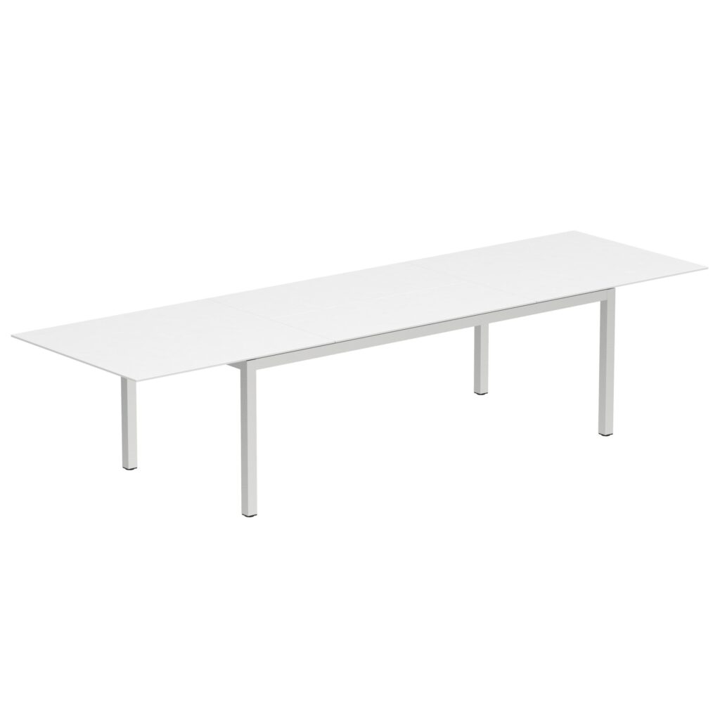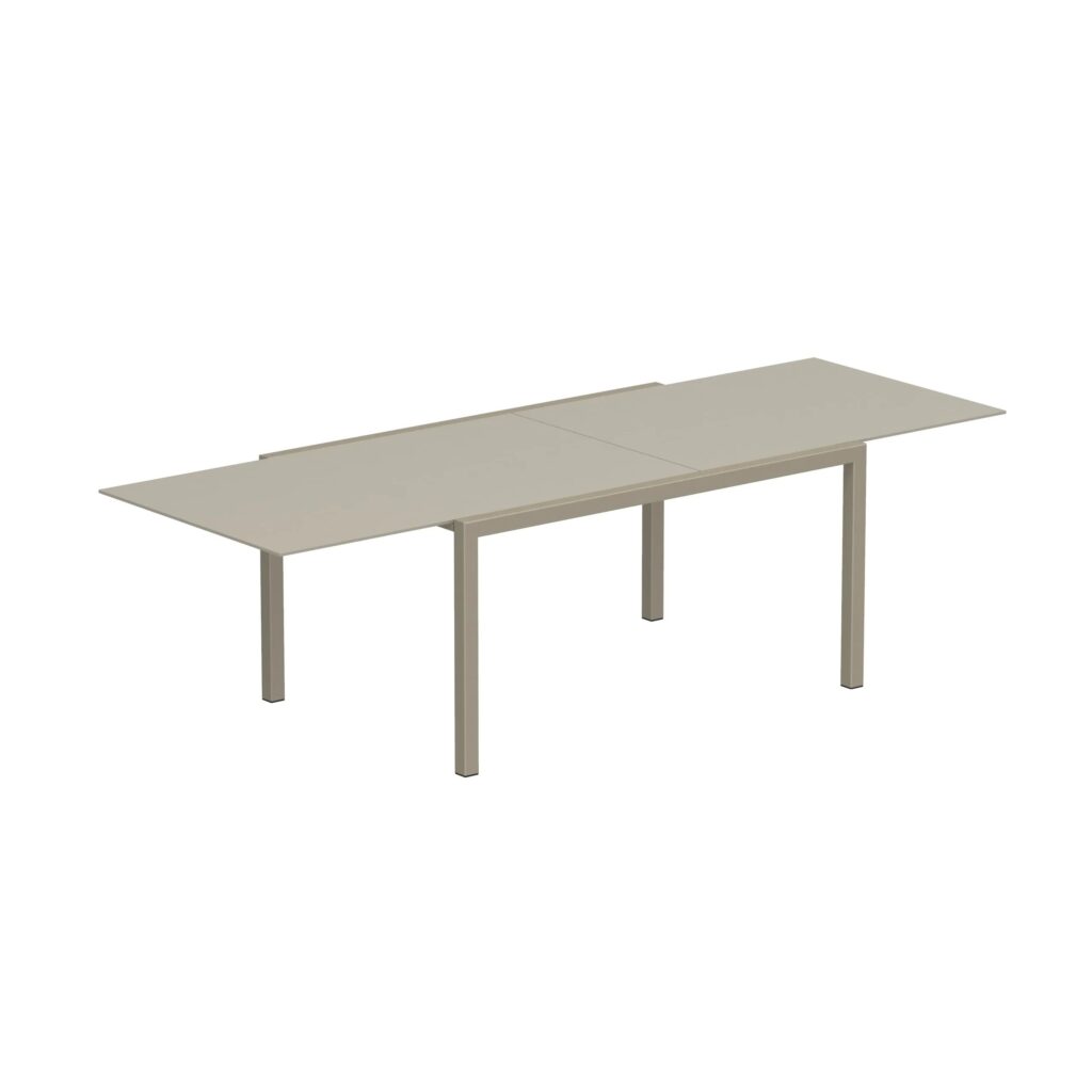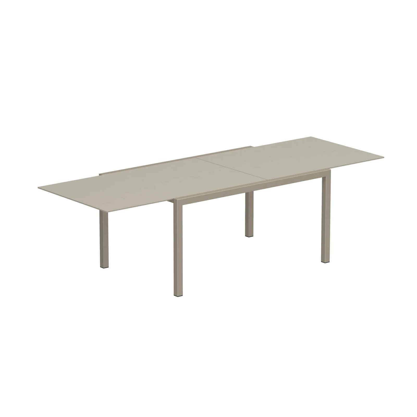 Taboela müsste eines der grössten Tischsortimente auf dem Markt sein. Grössen von 80 bis 340 cm, mit Gestelloptionen aus Edelstahl oder beschichtetem Aluminium und einer grossen Auswahl an passenden Platten aus Glas, Keramik oder Teakholz. Nicht zu vergessen: die zwei Grössen der cleveren Ausziehtische. Sicherlich gibt es für jede Terrassengrösse eine passende Taboela.