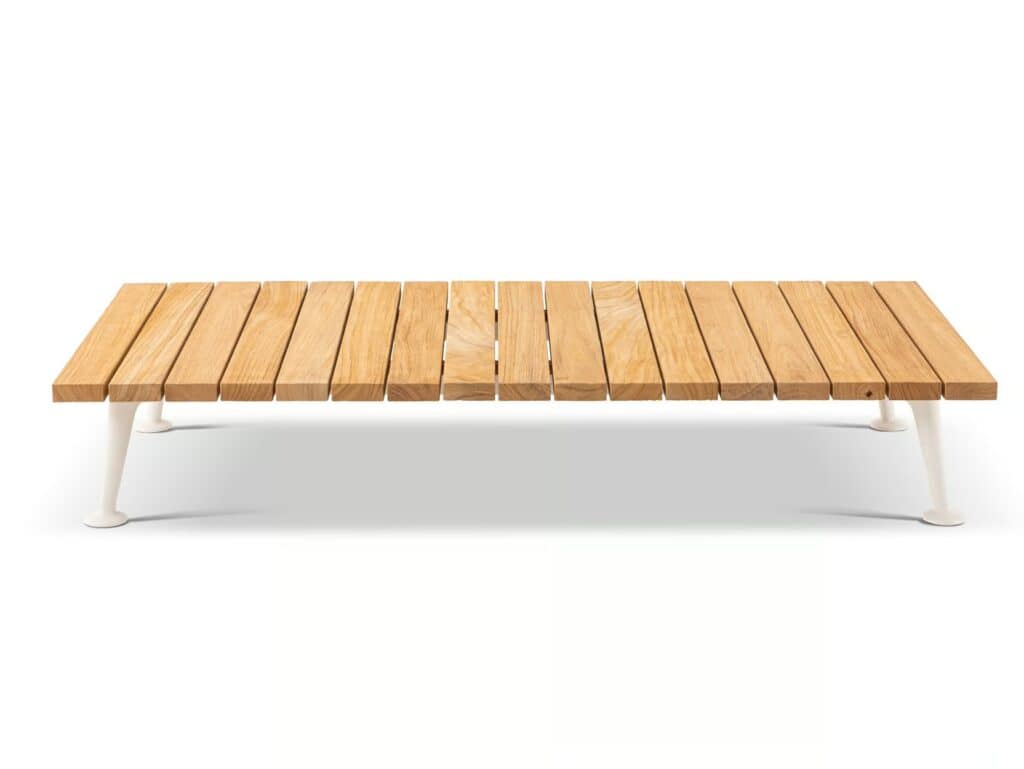 Das Tischchen Fenc-e Nature ist in einer Grösse und mit zwei Höhen erhältlich. Er nimmt die organische Form des Untergestells aus Aluminiumdruckguss der Sitzmöbel der Kollektion auf. Die Materialien sind natürlich, zukunftsweisend und von erstklassiger Qualität. Die Tischplatte mit Latten ist aus massivem Teakholz mit sandgestrahltem Finish, das einen naturbelassenen Effekt erzeugt.