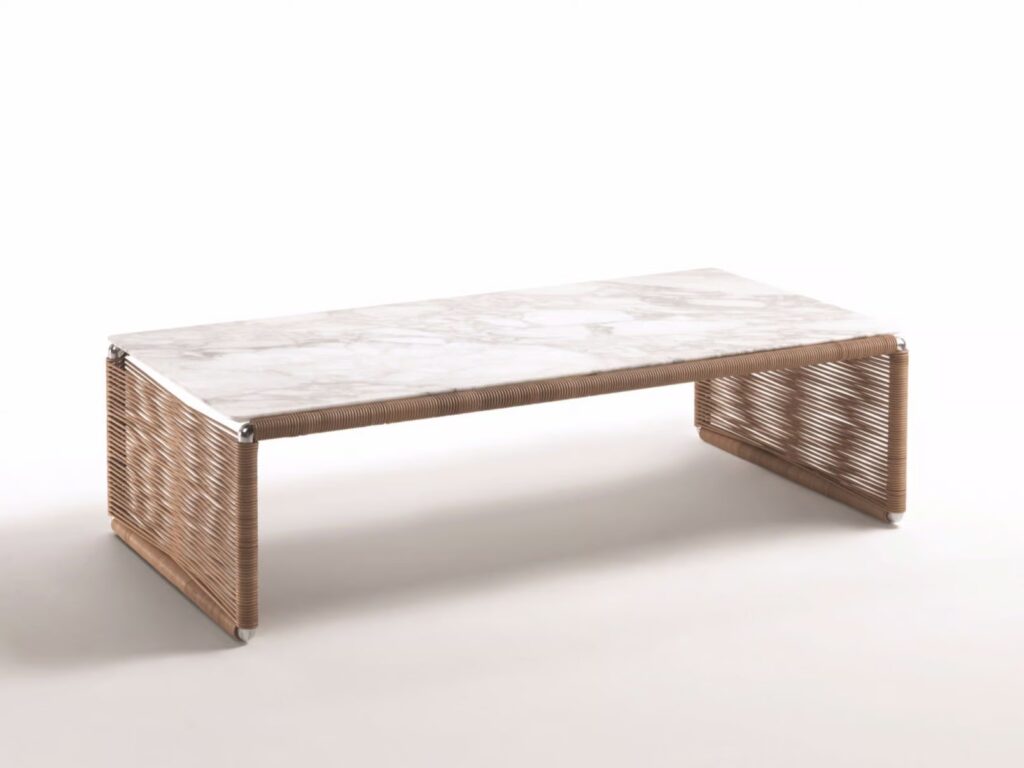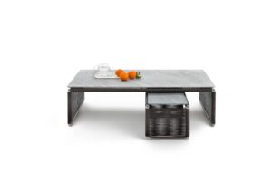 Hier wird ein Accessoire zu einem kleinen Meisterwerk der Handwerkskunst: Der Beistelltisch Tindari verkörpert ein Thema, das bei Flexform recht beliebt ist, das Geflecht. Die Struktur der Beistelltische Tindari ist aus Metallrohr, erhältlich satiniert, verchromt, brüniert, schwarz verchromt und champagnerfarbig. Die ganze Struktur ist umspannt mit einem wertvollen Ledergeflecht. Die meterweise von geschickten Händen handwerklich verflochtenen Lederkordeln wärmen die Strenge des Metalls auf und bilden ein einzigartiges Objekt. Die Platte kann aus massivem Nussbaum Canaletto oder Esche in raffinierten Färbungen hergestellt werden, oder aus wertvollem Marmor.