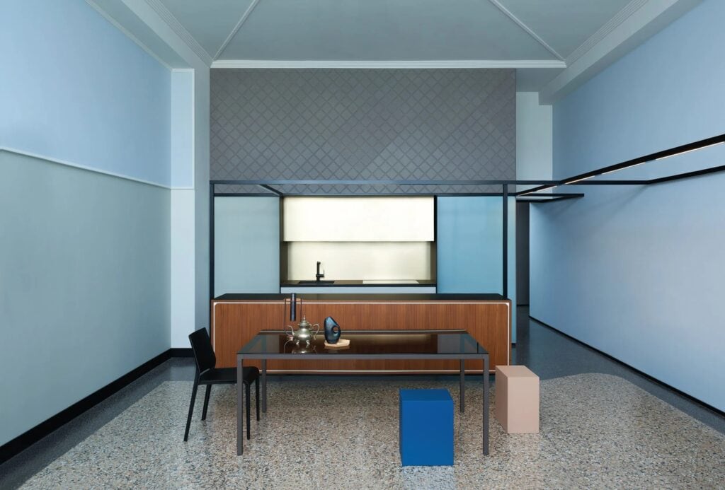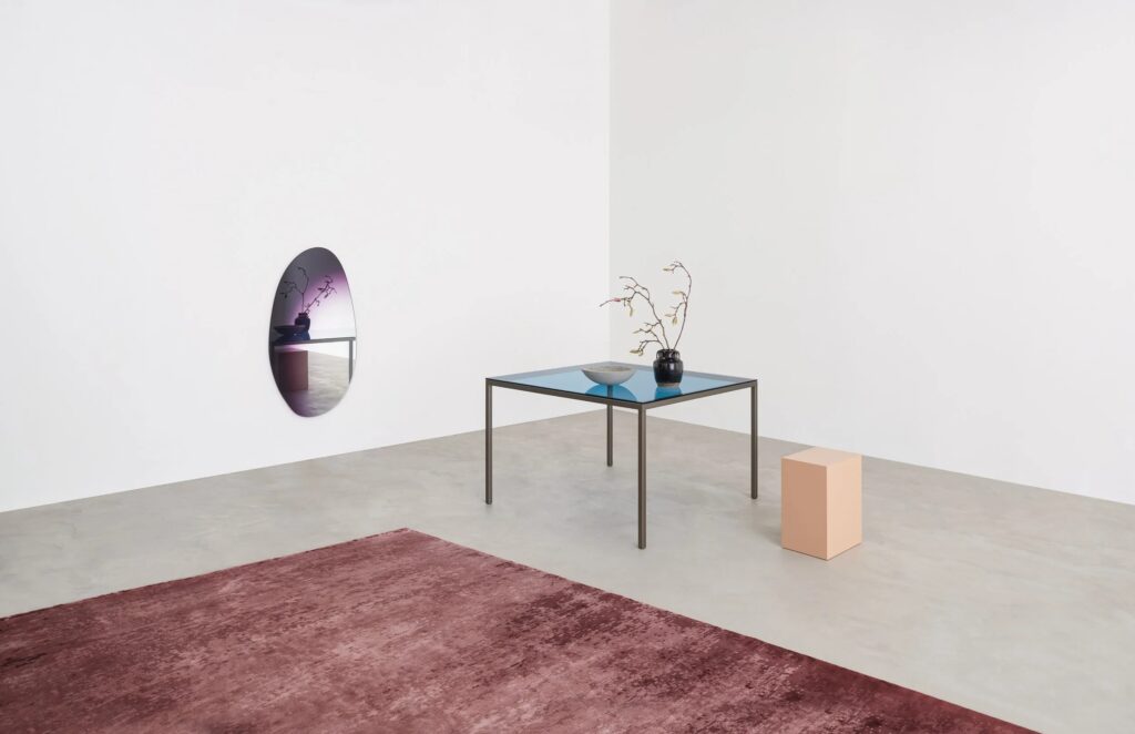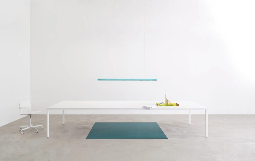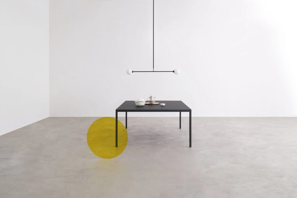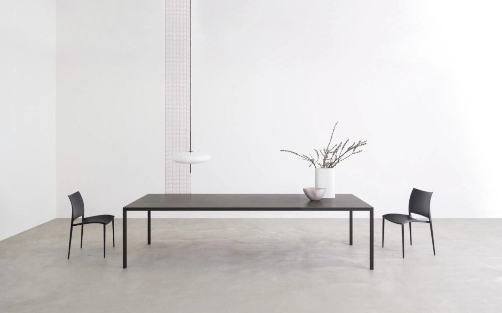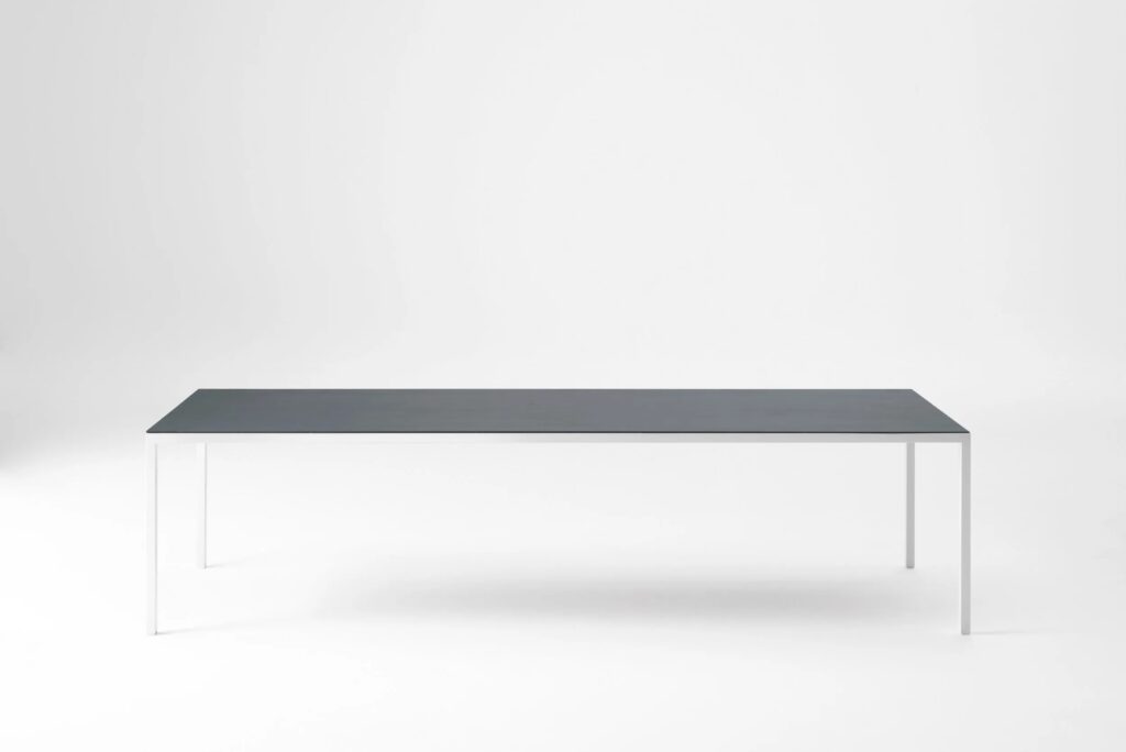 Tischsystem mit Stahlgestell, Querschnitt 30x30mm, 35x35mm, Verbindungselemente aus Druckguss. Gestell in den matt lackierten Ausführungen oder in den exclusiven Desalto Ausführungen. Platten aus Glas, Fenix® Laminat, Schichtlaminat, Keramik.