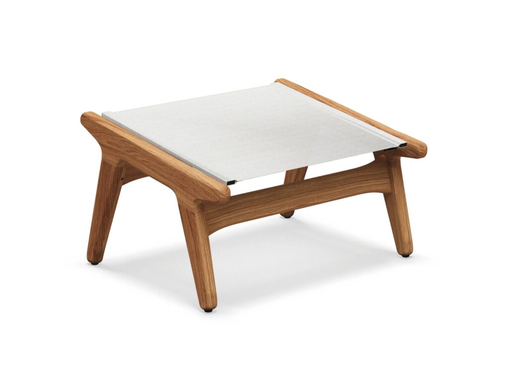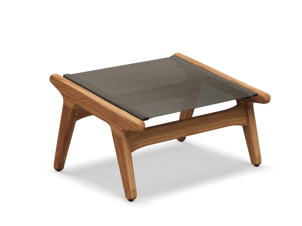 Bay - Rechteckiger Gartenhocker aus Stoff und Teakholz.