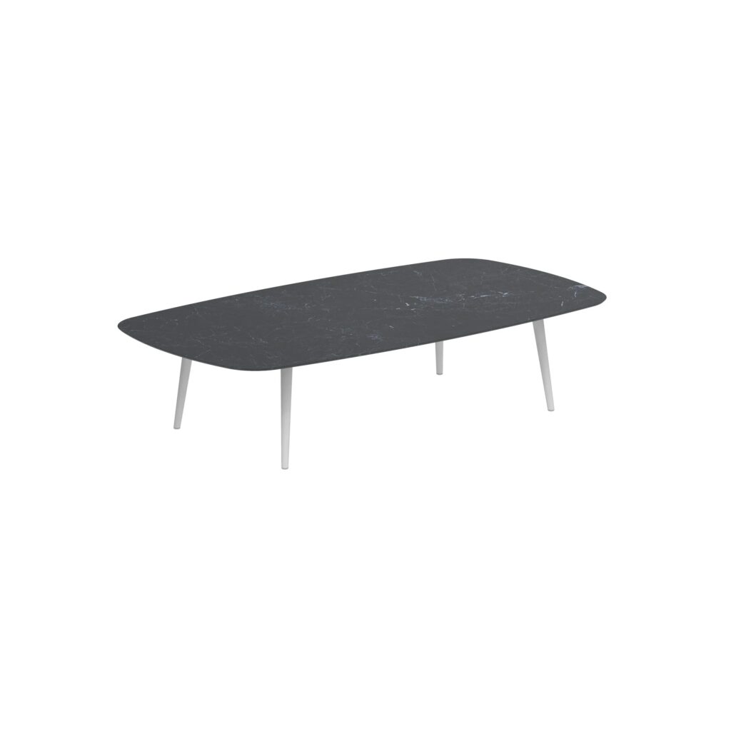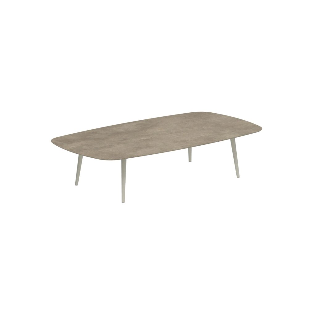 Styletto ist ein Gartentisch mit einer Platte, die in runder, ovaler und rechteckiger Form erhältlich ist. Es ist möglich, ihn in verschiedenen Grössen und Materialkombinationen zu haben.