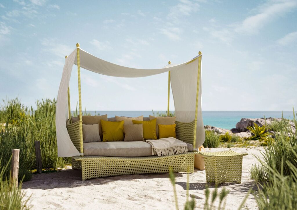 DAYDREAM - Beistelltisch. Rechteckiger Garten-Beistelltisch aus synthetischer Faser.