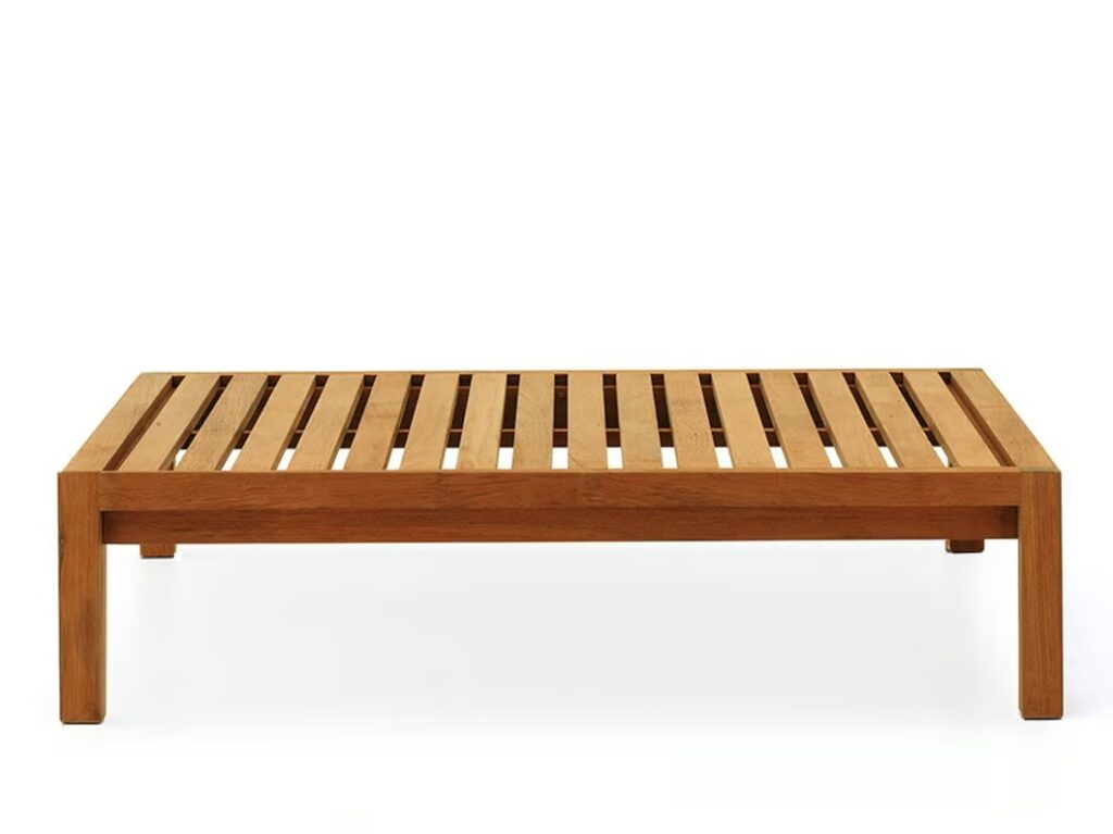 NETWORK is a rectangular garden table in teak, available in two heights.