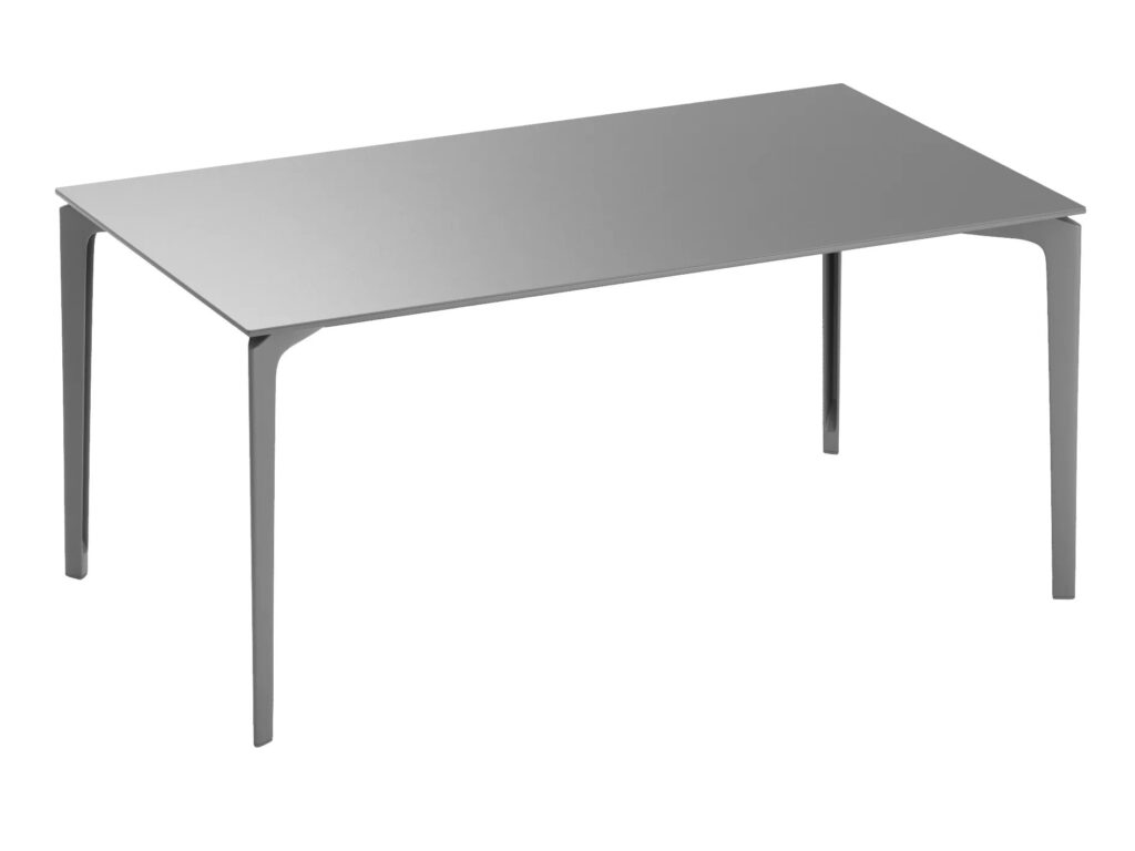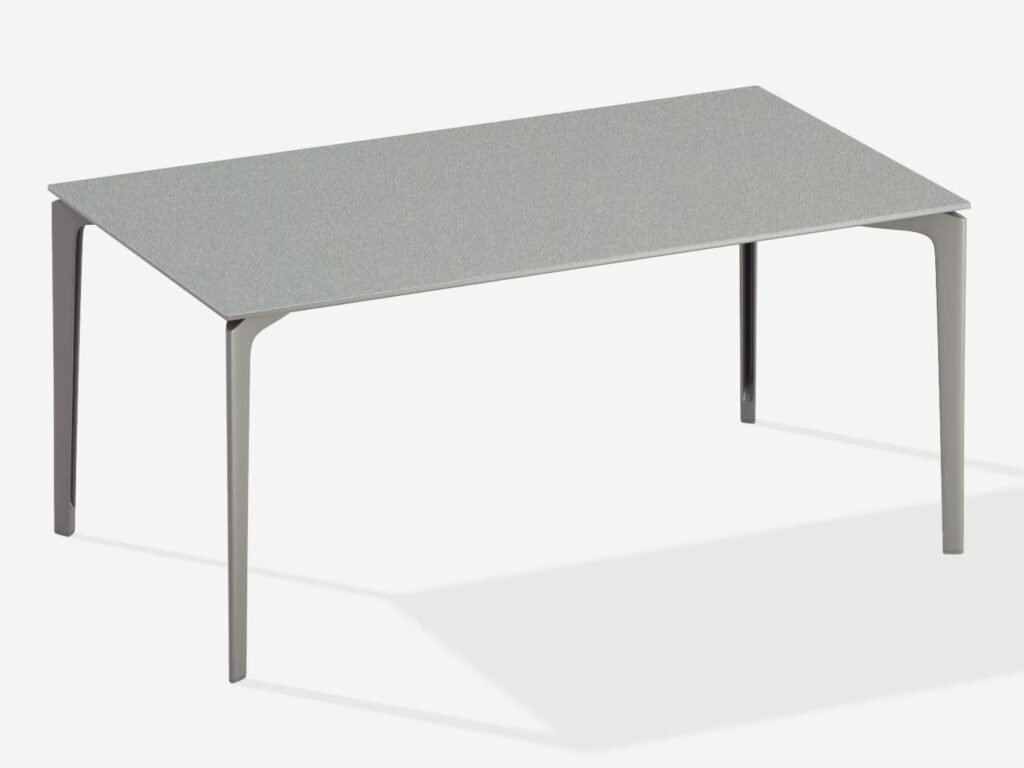 Eine Kollektion von Tischen, die sich durch Individualität auszeichnet. Die gesamte AllSize-Kollektion kann sowohl in der Höhe als auch in der Grösse der Tischplatte individuell gestaltet werden. Der geometrische und strenge Stil von AllSize wird durch die Tischplatten aus Feinsteinzeug oder mit Steineffekt hervorgehoben, die auf einem Gestell aus lackiertem Aluminium ruhen und einen interessanten Materialkontrast bilden. Die Beine, der Rahmen und die Stützen sind aus stranggepresstem Aluminium gefertigt. Es ist auch eine Standardversion mit einer Platte aus lackiertem Aluminium erhältlich.
