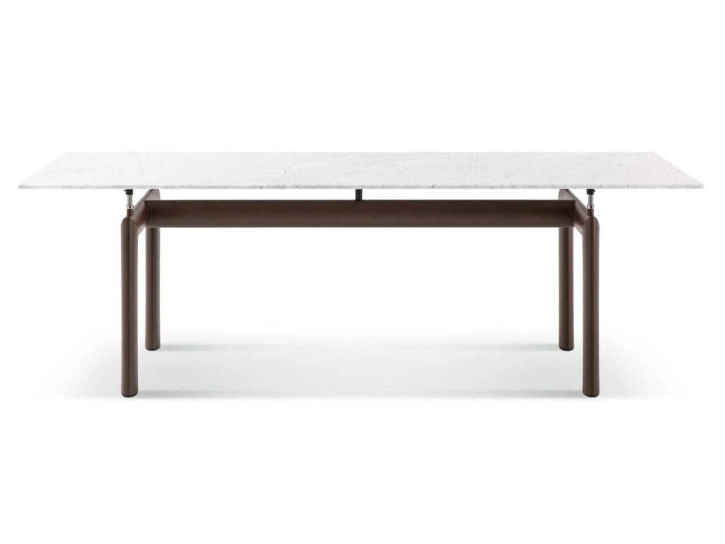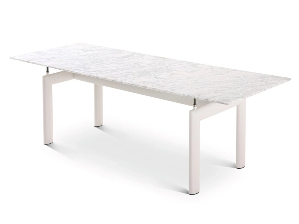 Die Idee, die dem Tisch Table tube d'avion zugrunde liegt, der 1929 im Salon d'Automne präsentiert wurde, ist die Trennung zwischen dem tragenden Element und dem getragenem Element, also zwischen dem Gestell und der Tischplatte. Die Eigenständigkeit der beiden Elemente wird durch vier Stützen zwischen dem Gestell und der Tischplatte hervorgehoben, die nicht nur höhenverstellbar sind, sondern auch als Distanzstücke zwischen dem wuchtigen Gestell und der zierlichen Tischplatte dienen. Bei dem Entwurf für das Gestell, der aus dem Jahr 1928 stammt, haben sich die Designer an den ovalen Profilen inspiriert, die in der Luftfahrt für das Trennen der Flügel von Doppeldeckern verwendet wurden. Das aktuelle Modell ist auch in einer Outdoor-Version mit Gestell aus Edelstahl erhältlich, das über eine spezielle Pulverlackierung mit Strukturlack in fünf
