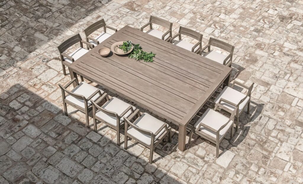 Costes erforscht Holz in all seinen Ausdrucksmöglichkeiten: vom lackierten Mahagoni, das zu verschiedenen Kontexten passt, bis hin zum Teakholz natur oder gebeizt, mit seinem faszinierend “verwitterten” Look. Umfangreiche Auswahl an Elementen mit harmonischer, schlichter Linienführung: Sofas, Tische, Stühle und Sonnenliegen.