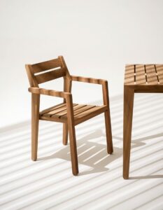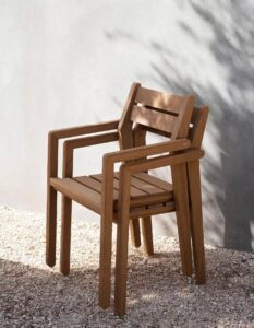 ZANIA ist eine Kollektion von Outdoor-Sitzgelegenheiten und -Tischen im modernen Design, die sich dank ihrer geringen Abmessungen und großen Funktionalität auf natürliche Weise in öffentliche Räumlichkeiten wie Hotels oder Restaurants und in die unterschiedlichsten Kontexte integrieren lassen. ZANIA besteht aus einem Couchtisch, einem Barhocker und einem stapelbaren Stuhl mit Armlehnen und ist aus FSC-zertifiziertem Iroko-Holz gefertigt, eine Essenz im warmem Farbton, langlebig und äußerst feuchtigkeitsbeständig. Das Design dieser Möbelfamilie zeichnet sich durch Lattenroste und Beine aus, die sowohl beim Tisch als auch bei der Sitzfläche im Bereich der Stützen abgerundet sind.