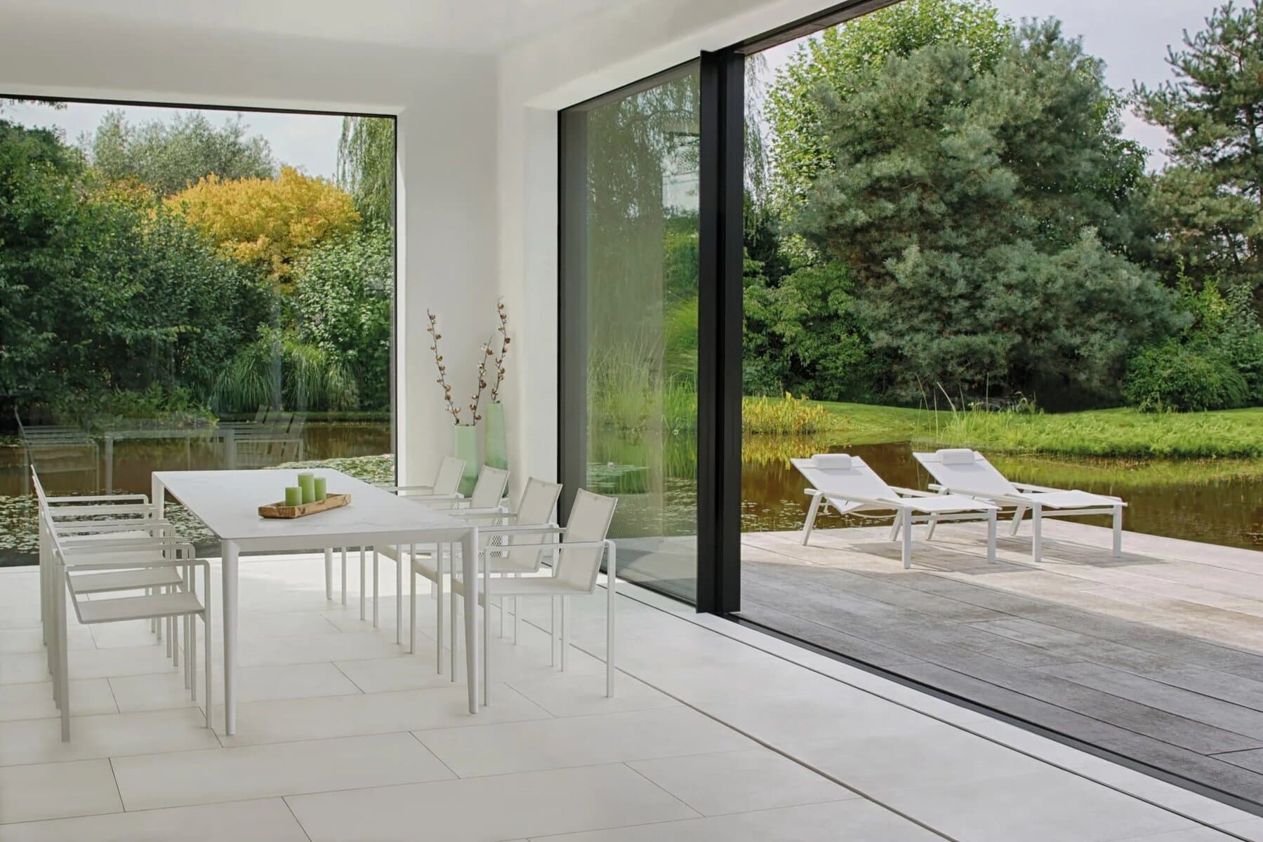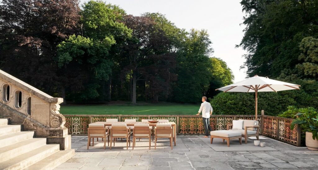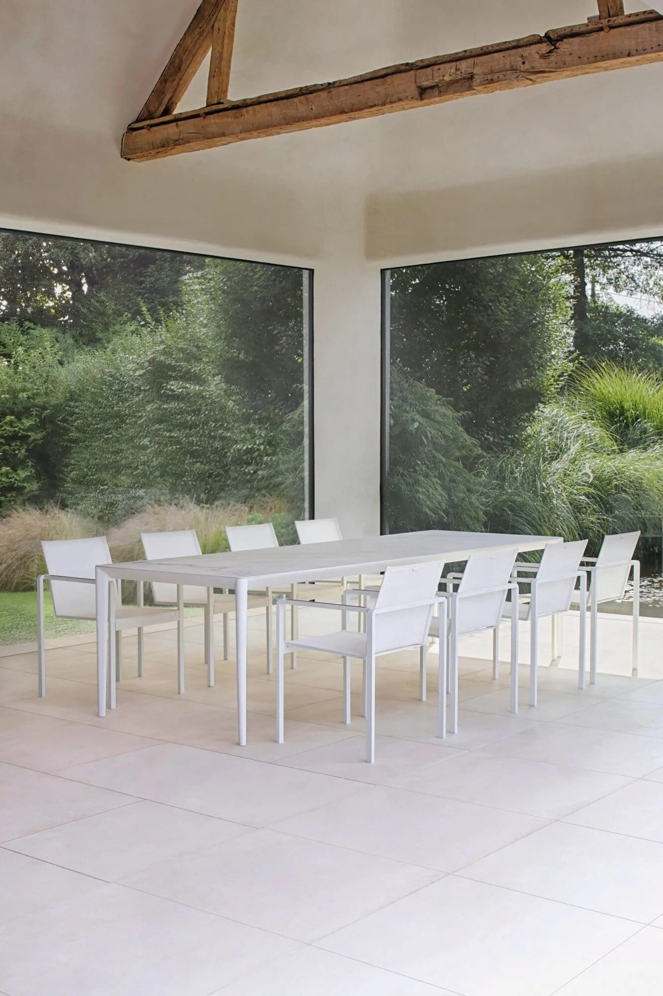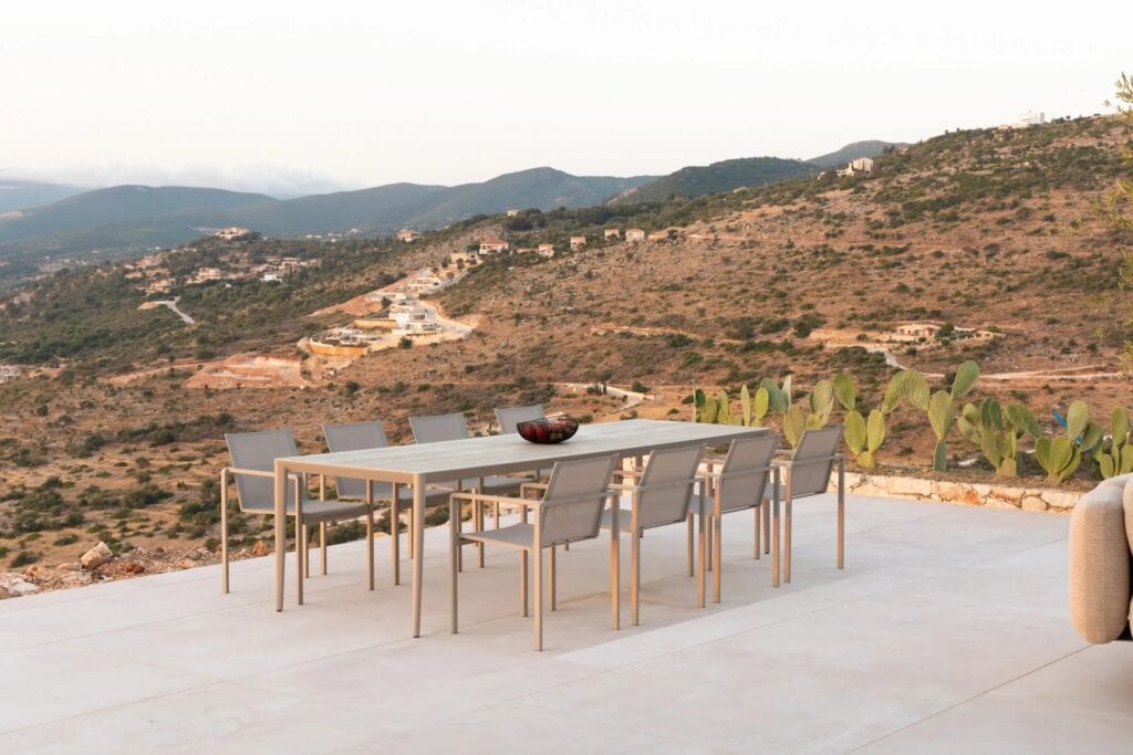 Purismus und Raffinesse: Zwei Stileigenschaften, die die Tischkollektion U-nite von Royal Botania am besten beschreiben. Bei der Ausführung aus beschichtetem Aluminium sitzt die Tischplatte im Inneren des Gestells, so dass nur die Oberseite sichtbar ist. Dieses Merkmal sorgt für ein sehr reines und klares Aussehen. Die Rahmen gibt es in fünf rechteckigen Grössen und einer runden, mit einer grossen Auswahl an Keramik oder Teakholz für die Platten. Auch die rechteckigen werden mit einem stabilen und dennoch eleganten Teakholzrahmen geliefert. Lassen Sie uns also stilvoll um einen dieser exquisiten U-Nite-Tische versammeln.