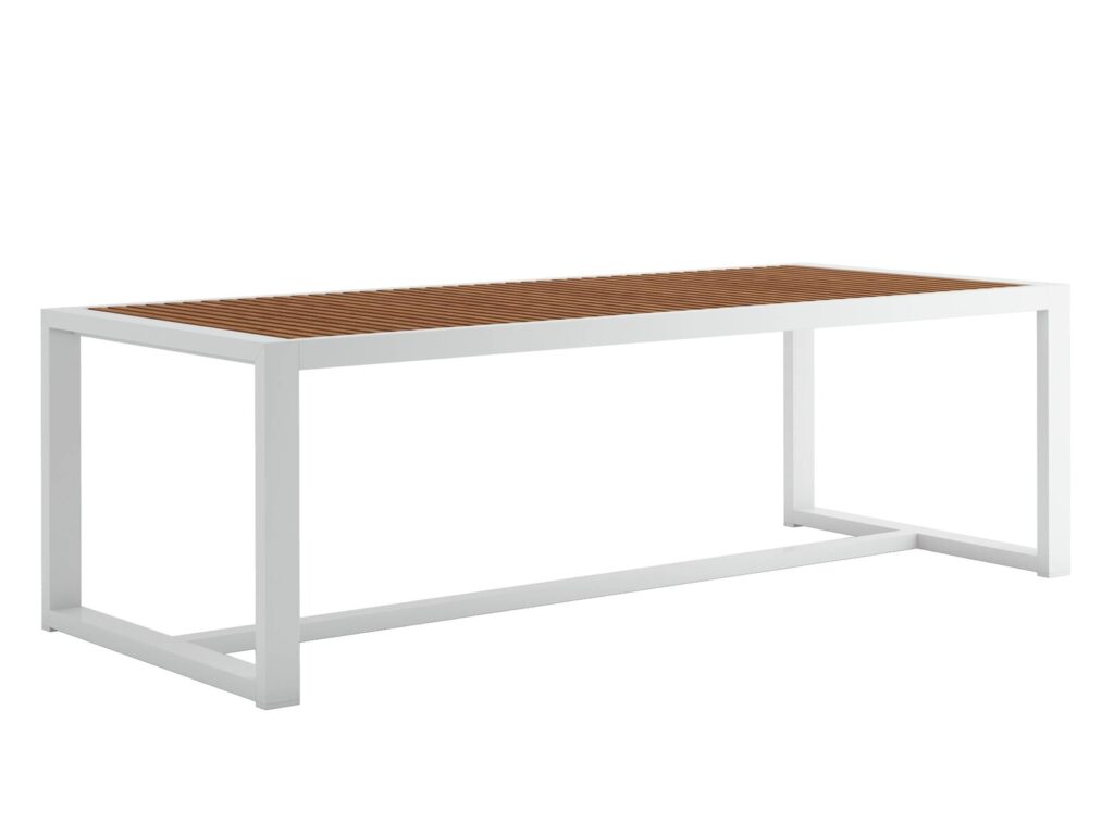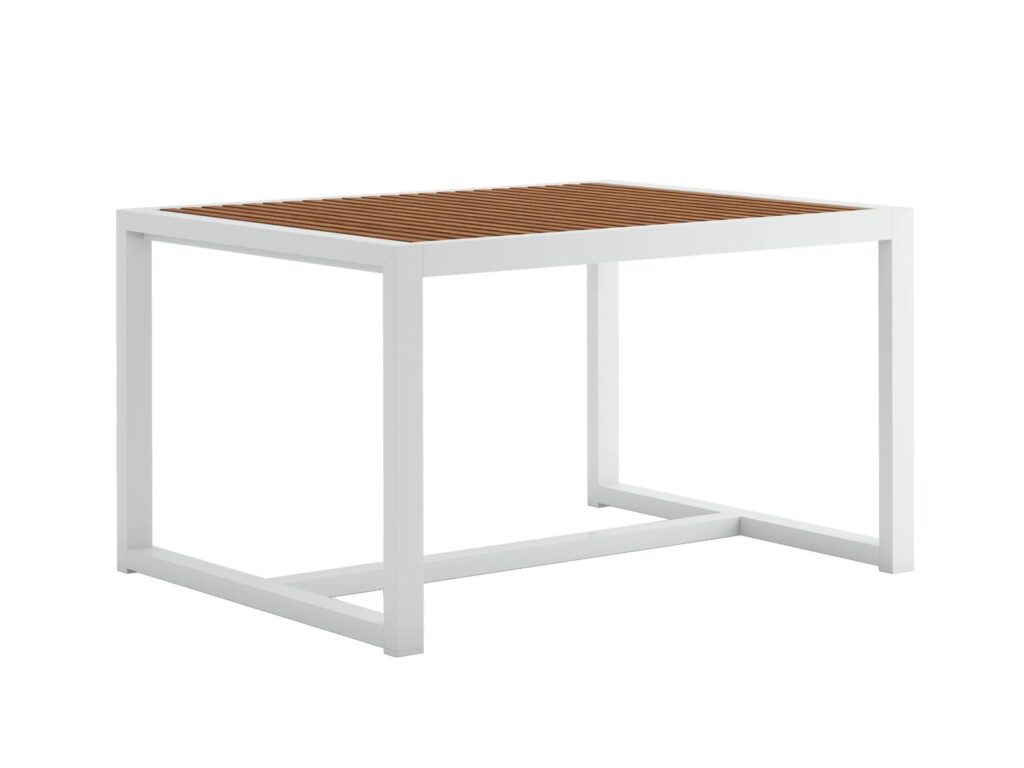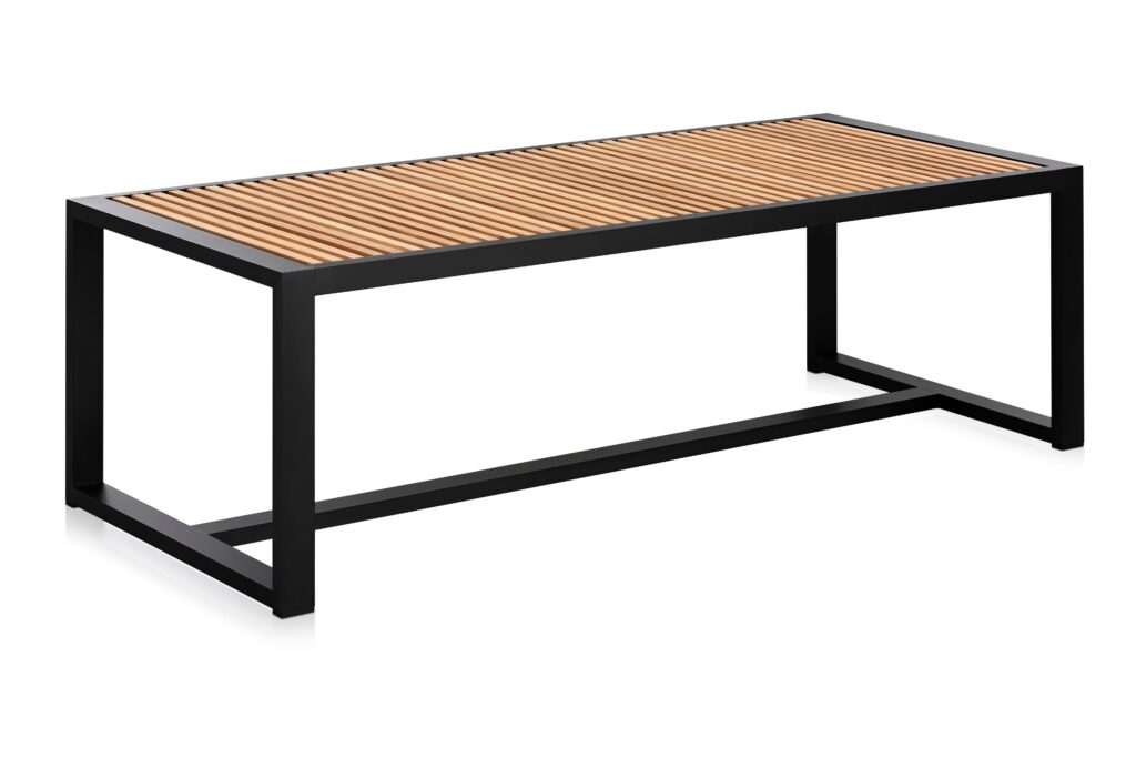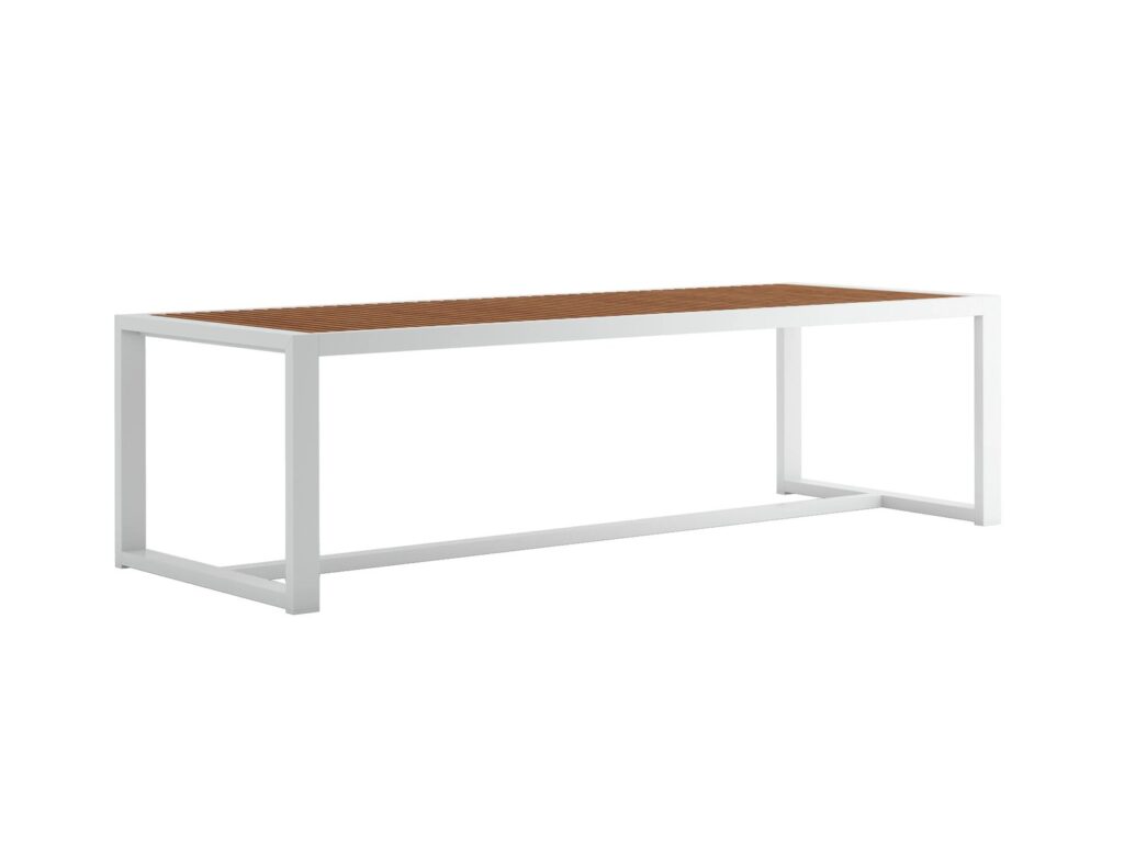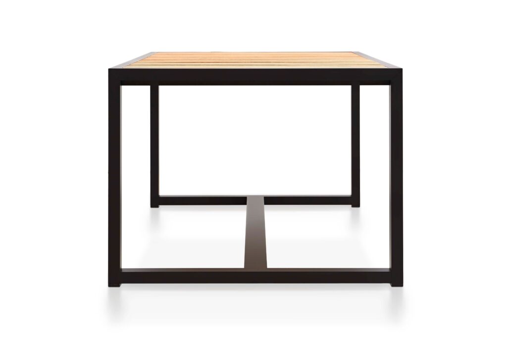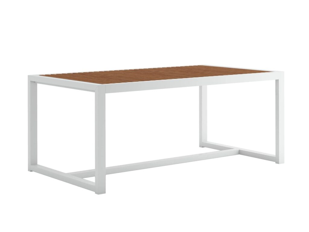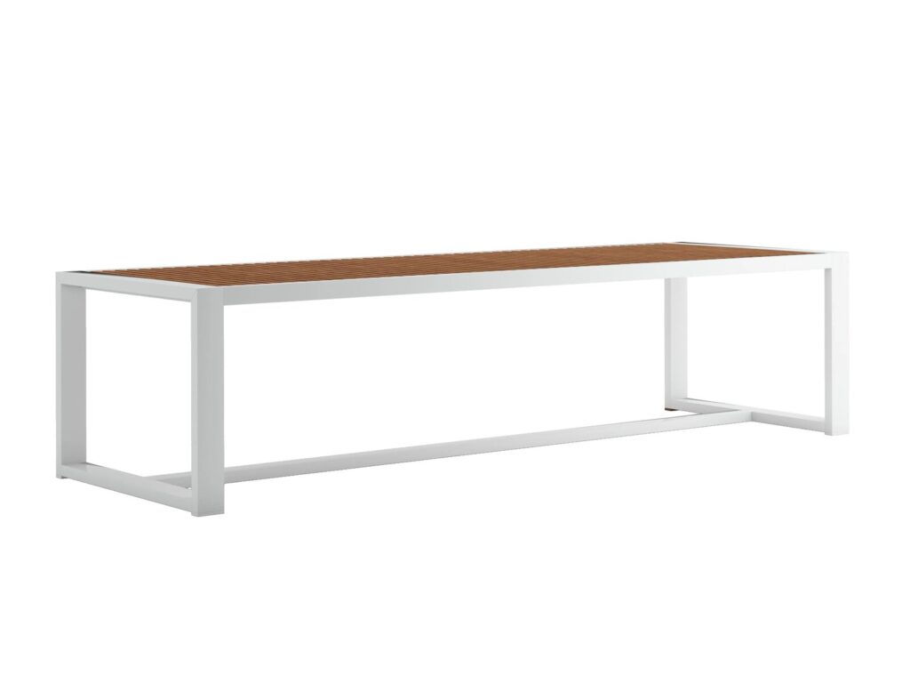 Die Wärme und Natürlichkeit des Teakholzes steht im Kontrast zur Kälte des Aluminiums, das die Möbel, das Fetischmaterial von GANDIABLASCO, umgibt. Die Kastanientöne verbinden sich mit der eloxierten Aluminiumfarbe sowie mit allen in dieser Kollektion erhältlichen pulverbeschichteten Oberflächen.