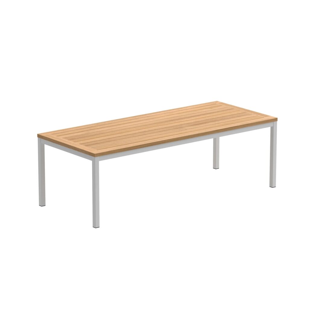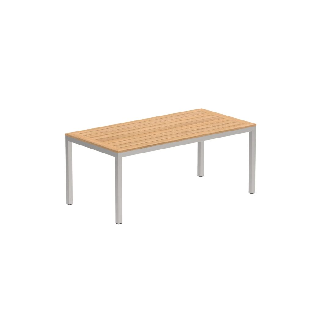 Taboela müsste eines der grössten Tischsortimente auf dem Markt sein. Grössen von 80 bis 340 cm, mit Gestelloptionen aus Edelstahl oder beschichtetem Aluminium und einer grossen Auswahl an passenden Platten aus Glas, Keramik oder Teakholz. Nicht zu vergessen: die zwei Grössen der cleveren Ausziehtische. Sicherlich gibt es für jede Terrassengrösse eine passende Taboela.