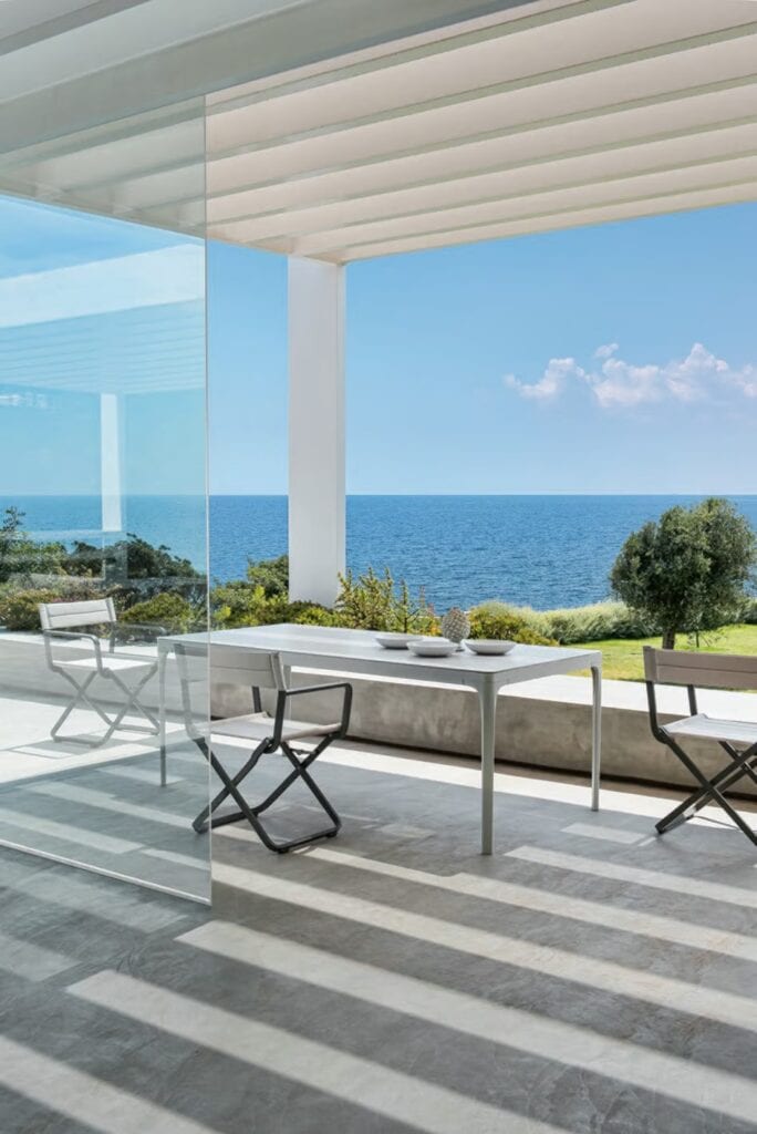 natürliches Teakholz, Feinsteinzeug mit Steineffekt oder einer besonderen stofflichen Oberfläche. Geschaffen für vielseitige Kombinationen mit den anderen Produkten der Kollektion Ethimo, passen sie sich allen Bedürfnissen an, zu Hause oder in gewerblichen Umgebungen.