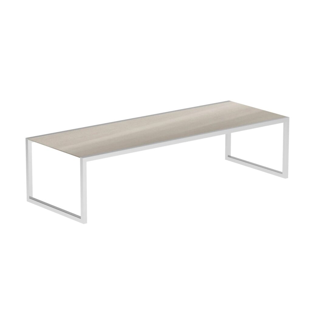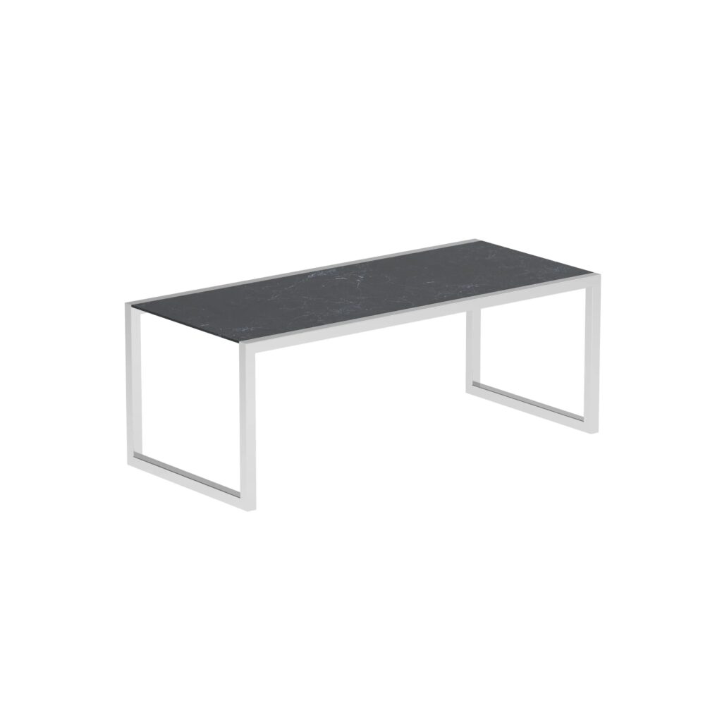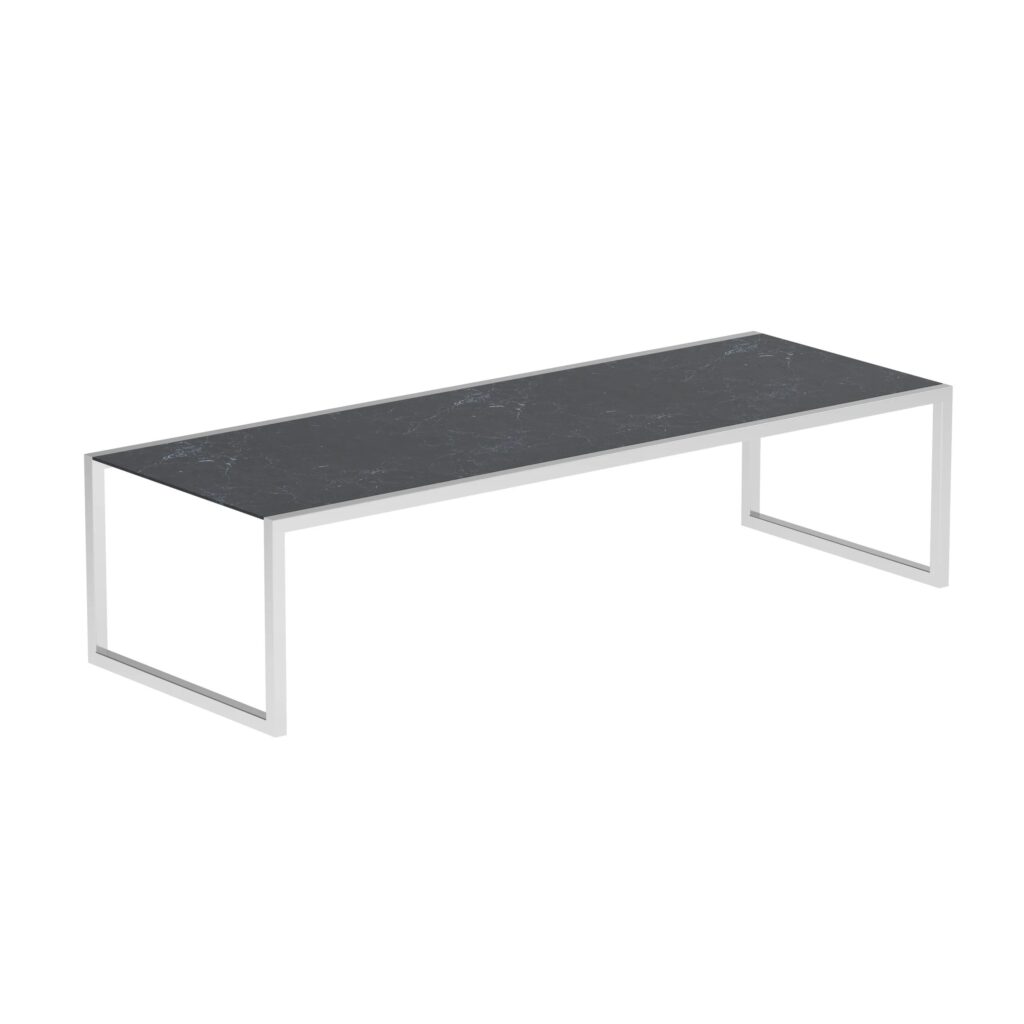Ninix ist ein rechteckiger Gartentisch aus Edelstahl und einer Platte aus Keramik und Glas, der zur Kollektion NINIX gehört. Erhältlich in drei Grössen.