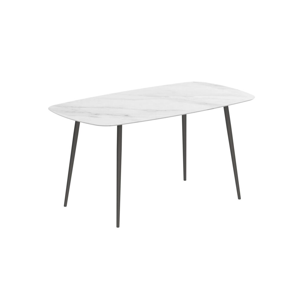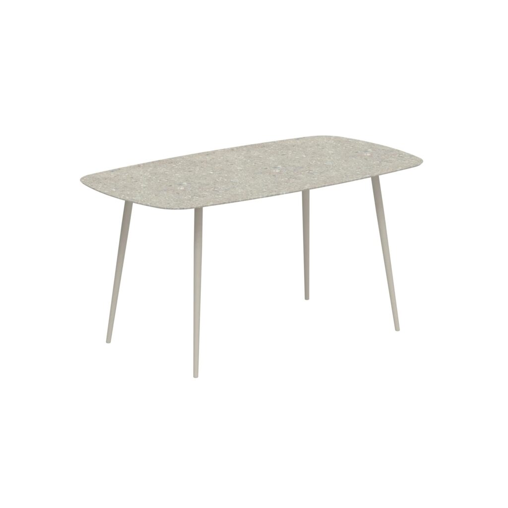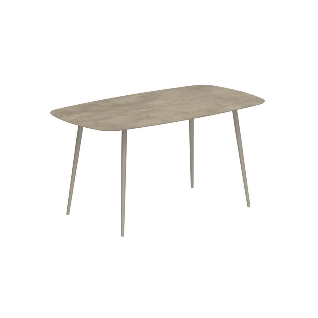Styletto ist ein Gartentisch mit einer Platte, die in runder, ovaler und rechteckiger Form erhältlich ist. Es ist möglich, ihn in verschiedenen Grössen, Höhen und Materialkombinationen zu haben.