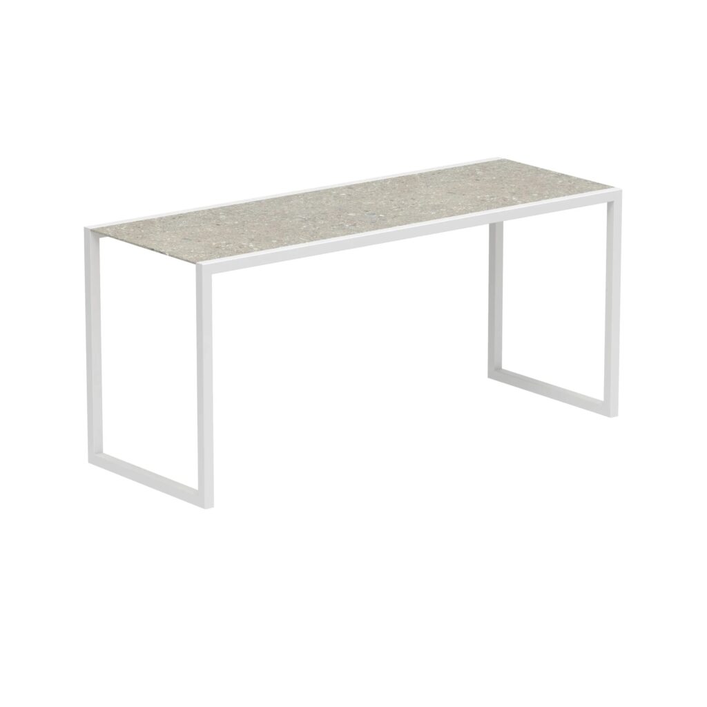 Ninix ist ein rechteckiger Garten-Hochtisch aus Edelstahl und Keramik- oder Glasplatte, der zur NINIX-Kollektion gehört.