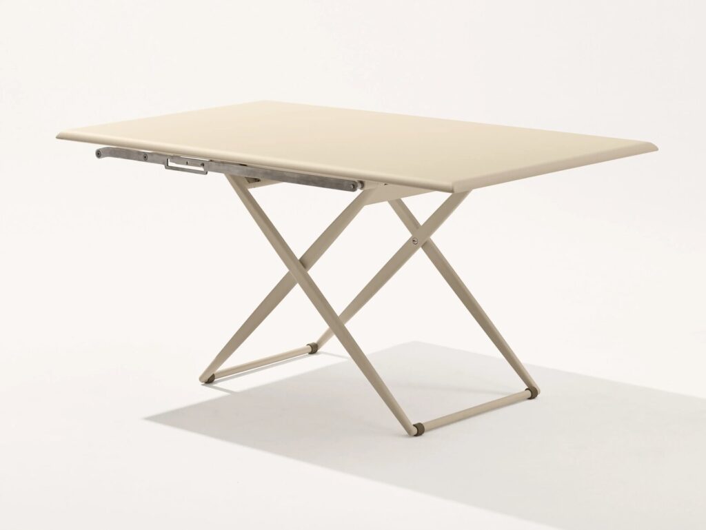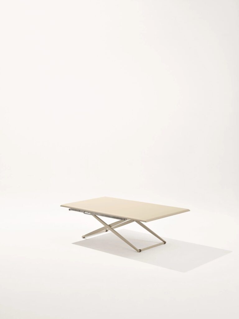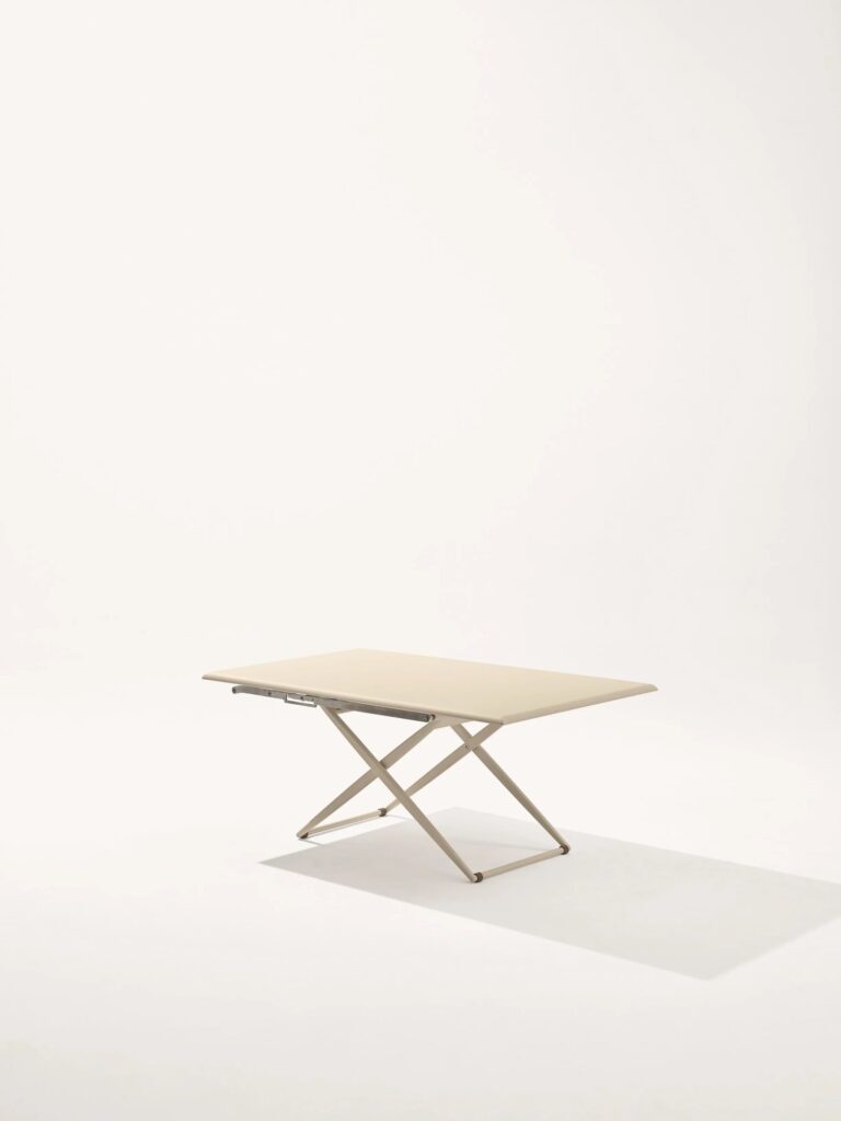 Rechteckiger Up&Down-Tisch mit 3 verstellbaren Höhen, Tisch aus lackiertem Aluminium.