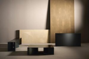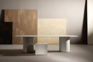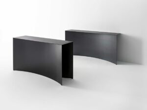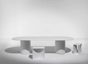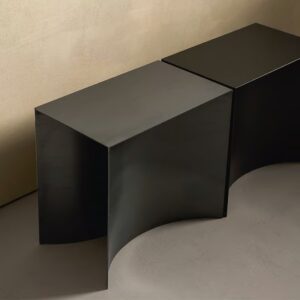 Die Serie "Void" entstand aus einer Untersuchung der Form im Verhältnis zu den architektonischen Begriffen Masse und Leere. Die Kollektion zeichnet sich durch die extreme Reinheit der Volumina aus, deren geradlinige Profile einen teilweise dekonstruierten und ausgehöhlten Körper definieren.