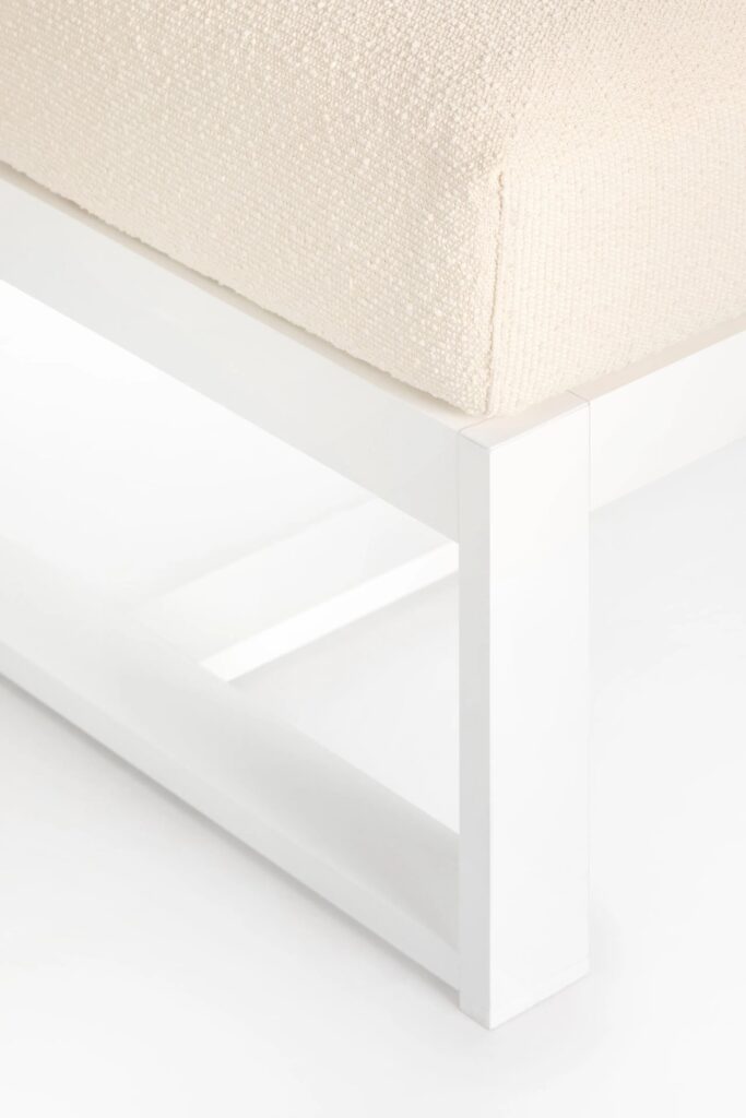 Hergestellt aus eloxiertem oder thermolackierten Aluminium. Polyurethan-Schaumstoff mit einem wasserabweisendem Bezug. Abziehbarer Bezug.