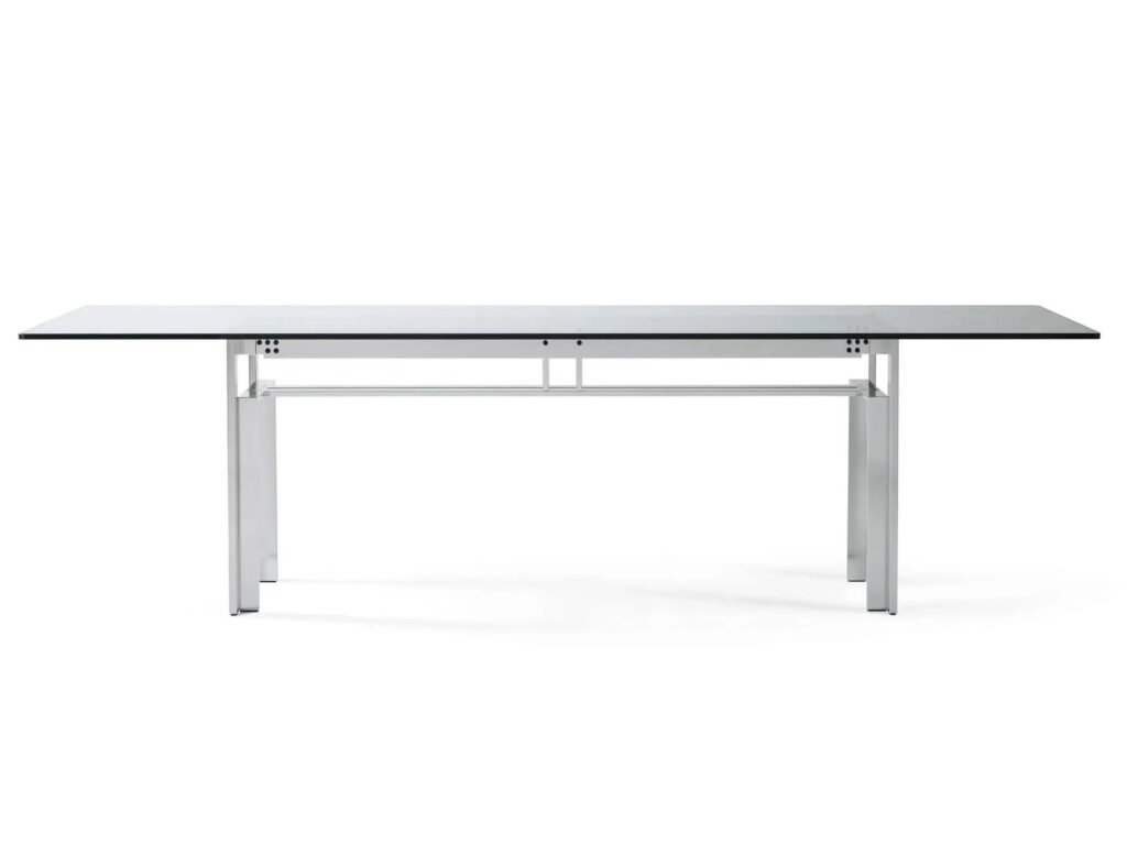 Ein Eckpfeiler des italienischen Designs, eine skulpturenhafte Struktur, die zum Emblem der „ultrarationalen” Bewegung geworden ist. Diese setzte sich gegen Ende der 60er Jahre dafür ein, die vom Rationalismus auferlegten Grenzen zu sprengen sowie die traditionellen ästhetischen Werte zurückzuerobern. Der Tisch Doge ist Teil der SimonCollezione von Cassina und wurde durch die Einführung neuer Bearbeitungen und Materialien aktualisiert, die im Laufe der Zeit die Evolution und Aktualisierung des historischen Modells geprägt haben. Die architektonische Basis aus Aluminium oder satiniertem Stahl, die durch flache Profile mit hoher Dicke definiert wird, stellt den wesentlichen Bestandteil des Tisches dar, während das elegante und raffinierte Auflagemechanismus dank der Transparenz der Glasplatte im Mittelpunkt der Sichtbarkeit steht. Das aktuelle Angebot umfasst fünf Abmessungen, die durch das erste Projekt von Scarpa inspiriert wurden. Sie sind sowohl mit Tischplatte aus Glas als auch aus Marmor erhältlich.
